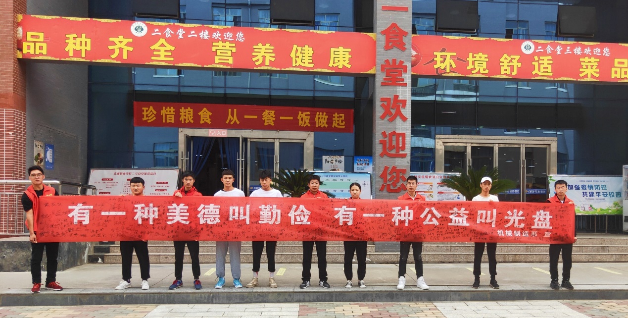 為了大力加強(qiáng)廣大師生節(jié)約糧食和光盤(pán)行動(dòng)的意識(shí),培養(yǎng)健康文明的就餐習(xí)慣。2020年9月16日武威職業(yè)學(xué)院機(jī)械制造系在學(xué)校食堂門(mén)口舉行了以“節(jié)約糧食?儉以養(yǎng)德”為主題的簽名活動(dòng)。