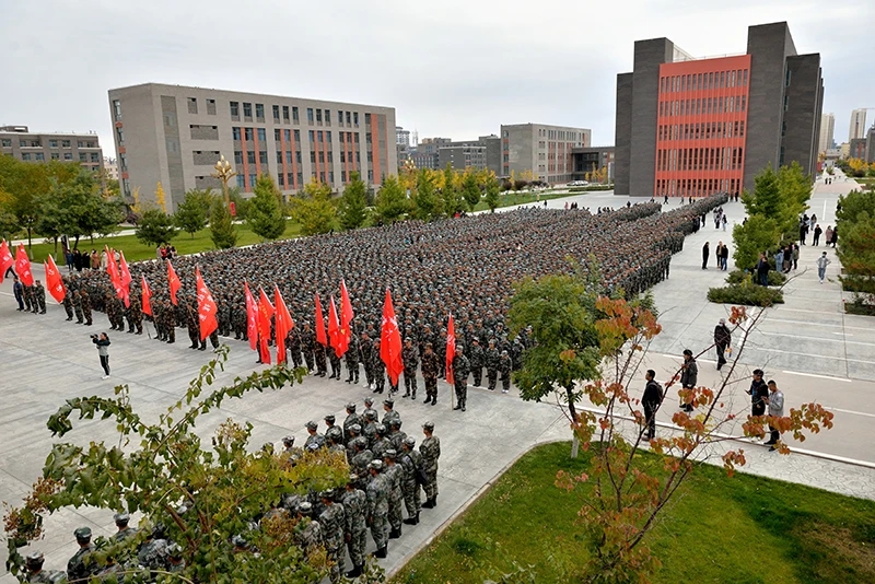 2020年10月13日早上,武威職業(yè)學(xué)院在大學(xué)生活動(dòng)中前廣場(chǎng)舉行了2020級(jí)新生軍訓(xùn)動(dòng)員大會(huì)。學(xué)院黨委副書記翟存祥向軍訓(xùn)團(tuán)授旗,并宣布新生軍訓(xùn)開始;31666部隊(duì)政治工作部副主任杜太申作動(dòng)員講話,院領(lǐng)導(dǎo)王永緒、田迎春、何毅、陳曉煜、張開禮出席大會(huì);學(xué)院各教學(xué)院系負(fù)責(zé)人、輔導(dǎo)員、班主任及?2020級(jí)4339名學(xué)生參加了大會(huì)。大會(huì)由黨委委員、副院長(zhǎng)王守云主持。?