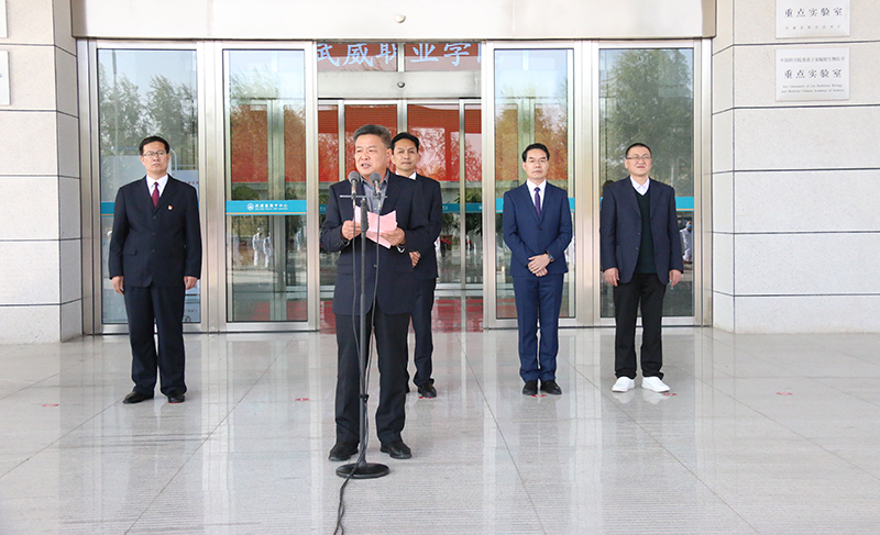 揭牌儀式上,趙明介紹學(xué)院教育教學(xué)改革發(fā)展所取得的成效,強(qiáng)調(diào)職業(yè)教育和普通教育是兩種不同的教育類(lèi)型,具有同等重要地位,全面落實(shí)《國(guó)家職業(yè)教育改革實(shí)施方案》和“技能甘肅”部署要求,推動(dòng)學(xué)院“雙高”建設(shè),爭(zhēng)創(chuàng)高職應(yīng)用型本科院校,離不開(kāi)高水平的合作醫(yī)院,離不開(kāi)高水平的師資隊(duì)伍。教師實(shí)踐基地的揭牌成立,將會(huì)進(jìn)一步加強(qiáng)雙方的合作交流,實(shí)現(xiàn)資源共享、優(yōu)勢(shì)互補(bǔ)、共同發(fā)展,我們要積極探索和創(chuàng)新基地育人方式,使之成為“雙師型”教師培養(yǎng)的搖籃。