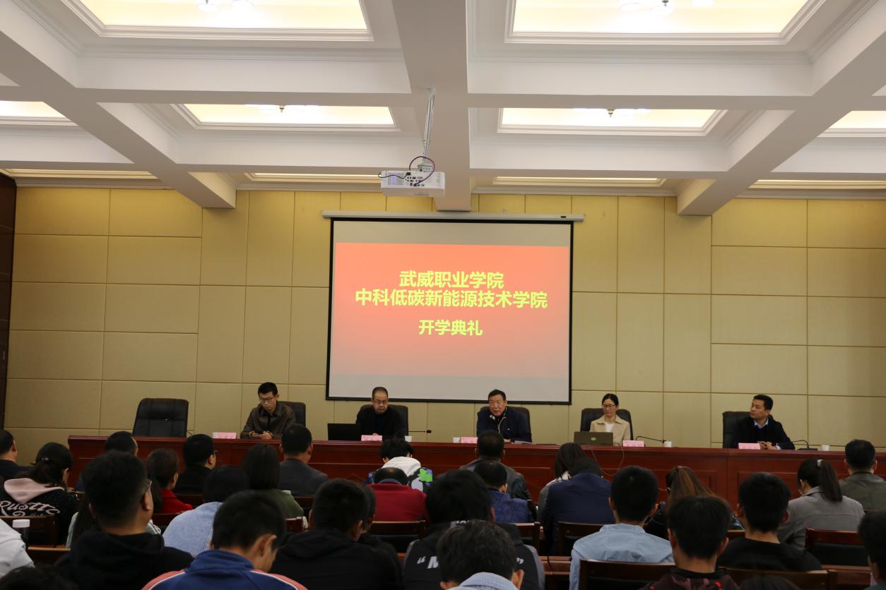 ??10月29日下午,中科低碳新能源技術學院在行樹樓北側(cè)報告廳召開2020級新生開學典禮。中國科學院先進核能創(chuàng)新研究院高級教育顧問、中科低碳新能源技術學院院長楊存忠教授,武威職業(yè)學院黨委副書記、中科低碳新能源技術學院副院長翟存祥教授,中國科學院上海應用物理研究所副研究員、中科低碳新能源技術學院院長助理米麗娟博士,中科低碳新能源技術學院合作辦學辦公室主任、能源工程系黨組織書記胡建宏教授,中科低碳新能源技術學院合作辦學辦公室副主任、能源工程系主任黃述杰副教授,中科低碳新能源技術學院全體教師及2020級新生參加了此次大會。會議由黃述杰主任主持。