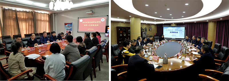 考察組一行分別與天津醫(yī)學(xué)高等??茖W(xué)校、天津職業(yè)大學(xué)進(jìn)行了深入交流座談。天津醫(yī)高專是國家雙高校中唯一一所衛(wèi)生類學(xué)校,在座談會上,醫(yī)高專為學(xué)院醫(yī)藥衛(wèi)生類專業(yè)群建設(shè)提出了指導(dǎo)意見,介紹了醫(yī)高?!?.5+1.5”學(xué)制安排促就業(yè)、教學(xué)系黨委行政雙組長抓就業(yè)、就業(yè)工作經(jīng)費(fèi)動態(tài)調(diào)整引領(lǐng)就業(yè)的工作機(jī)制,并就下一步共同培養(yǎng)師資、互派青年骨干教師交流學(xué)習(xí)達(dá)成共識。天津職業(yè)大學(xué)是《天津—甘肅職業(yè)教育協(xié)作實(shí)施方案》合作院校,在天津職大座談會上,兩校圍繞專業(yè)群組群、產(chǎn)業(yè)學(xué)院組建模式、教學(xué)模式、探索產(chǎn)業(yè)學(xué)院建設(shè)、混合所有制二級學(xué)院建設(shè)、就業(yè)工作“一對一”模式、學(xué)生管理經(jīng)驗(yàn)和成果進(jìn)行了分享與交流。劉斌校長出席并主持會議,對學(xué)院的雙高建設(shè)給予了特別關(guān)心與指導(dǎo)。他希望,雙方作為兄弟院校,要進(jìn)一步加強(qiáng)交流合作,努力為推動?xùn)|西協(xié)作和武威職業(yè)教育高質(zhì)量發(fā)展做出新的更大的貢獻(xiàn)。