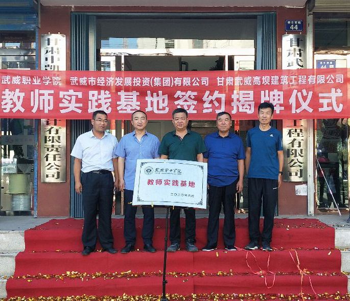 為使建筑專業(yè)的教學(xué)與建筑工程實踐緊密結(jié)合起來,實現(xiàn)企業(yè)、學(xué)院優(yōu)勢互補共同發(fā)展,8月9日,學(xué)院聯(lián)合武威市經(jīng)濟發(fā)展(集團)有限公司、甘肅武威高壩建筑工程有限公司,在甘肅武威高壩建筑工程有限公司大樓前隆重舉行武威職業(yè)學(xué)院教師實踐基地簽約揭牌儀式。出席簽約揭牌儀式的領(lǐng)導(dǎo)同志有:學(xué)院黨委書記、院長趙明同志,基建處負(fù)責(zé)人賈龍同志,建筑工程系副主任蔡濟眾同志,黨建負(fù)責(zé)人孫潤元同志;武威市經(jīng)濟發(fā)展(集團)有限公司董事長崔國斌、副董事長董英,甘肅武威高壩建筑工程有限公司總經(jīng)理周勝年。