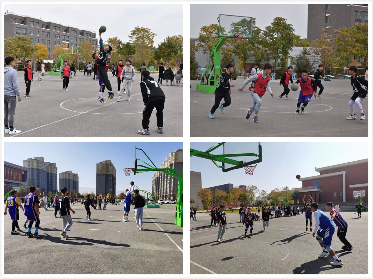 籃球比賽共有12支隊(duì)伍參加比賽,在賽場(chǎng)上運(yùn)動(dòng)員積極拼搏、全力以赴。場(chǎng)下的同學(xué)們努力為運(yùn)動(dòng)員吶喊助威,為運(yùn)動(dòng)員們注入了強(qiáng)大的精神動(dòng)力。