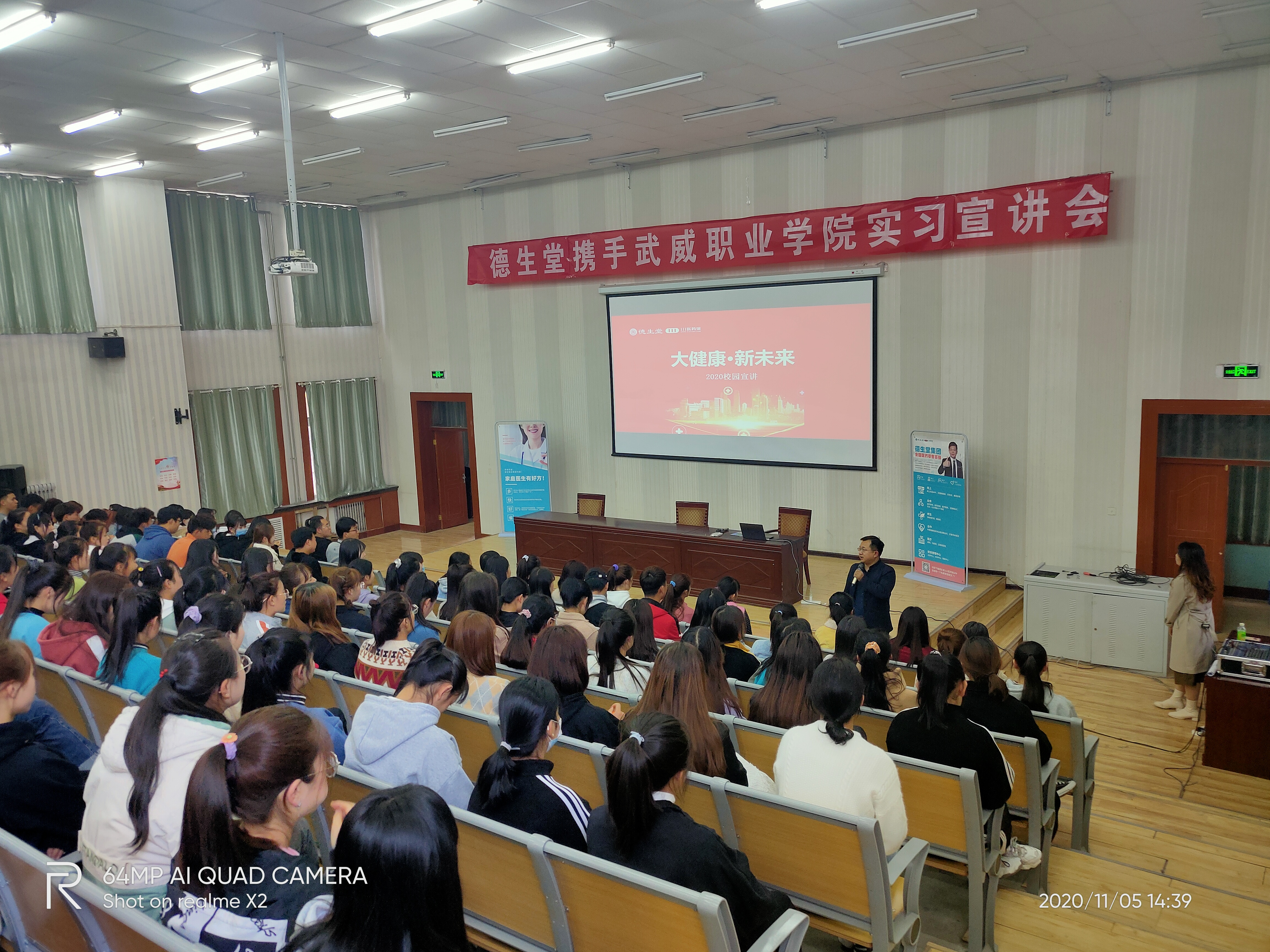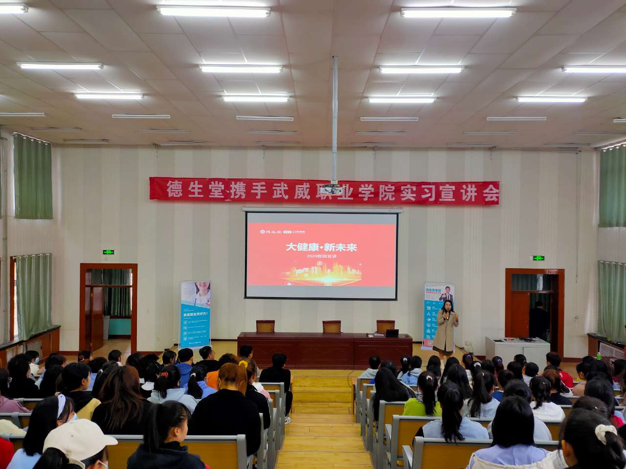 2020年11月5日,武威職業(yè)學(xué)院藥學(xué)系攜手德生堂在正德廳舉辦實(shí)習(xí)宣講會(huì)。藥學(xué)系黨總支書(shū)記、主任魏潤(rùn)明、藥學(xué)系副主任楊建美、德生堂集團(tuán)武威區(qū)域經(jīng)理呂福英及2021屆172名畢業(yè)生參加宣講會(huì)。