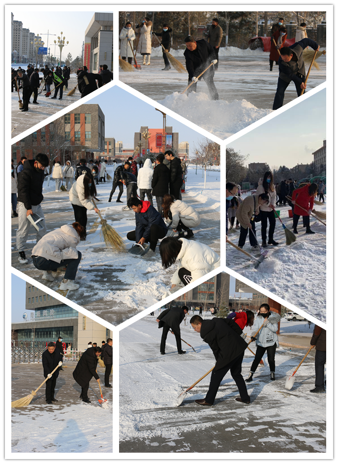路面積雪既給過往師生和行人帶來行走不便,也存在安全隱患。學院領(lǐng)導及部分師生手拿掃帚、鐵鍬等工具,爭先恐后、相互配合,認真清掃校園道路積雪,鏟除路面積冰。經(jīng)過大家持續(xù)努力,原本積雪結(jié)冰的路面恢復了正常,不僅干凈了,也消除了安全隱患。