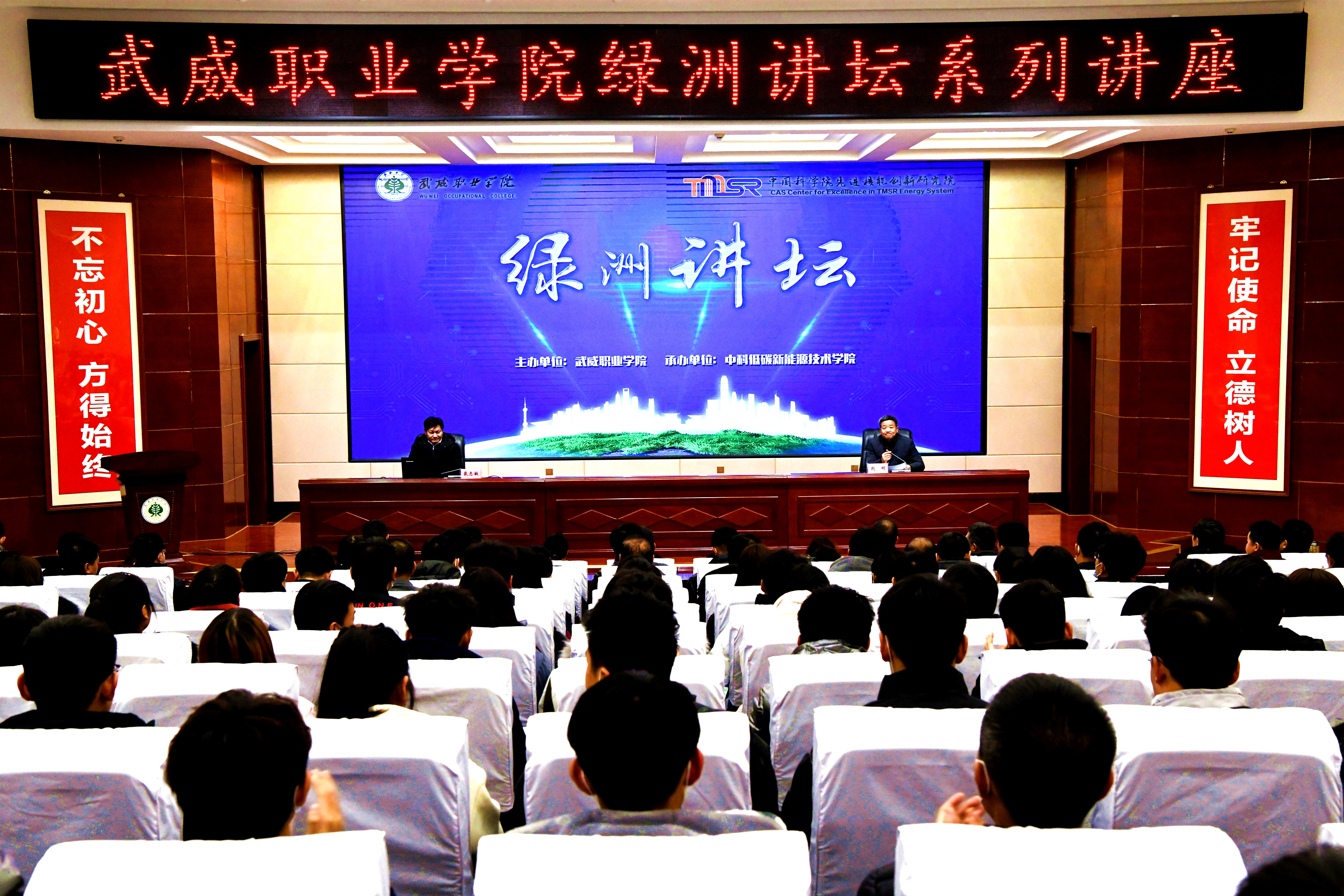 ?12月16日下午,中國科學(xué)院上海應(yīng)用物理研究所所長戴志敏蒞臨學(xué)院綠洲講壇,在大學(xué)生活動中心菁英廳為師生做了題為《先進核能及其綜合運用》的專題報告。中國科學(xué)院上海應(yīng)用物理研究所副所長、中科武威所主任賀戰(zhàn)軍,中國科學(xué)院先進核能創(chuàng)新研究院高級教育顧問、中科低碳新能源技術(shù)學(xué)院院長楊存忠教授,中國科學(xué)院先進核能創(chuàng)新研究院副研究員、中科低碳新能源技術(shù)學(xué)院院長助理米麗娟博士,中國科學(xué)院建安總體副負責(zé)人、武威分部綜合管理辦副主任趙先堂,中國科學(xué)院上海應(yīng)用物理研究所建安技術(shù)部副主任、中科武威所副主任李超出席報告會。學(xué)院在家院領(lǐng)導(dǎo)、全體中層管理干部和師生代表共220人聆聽了報告會。報告會由學(xué)院黨委書記、院長趙明主持。