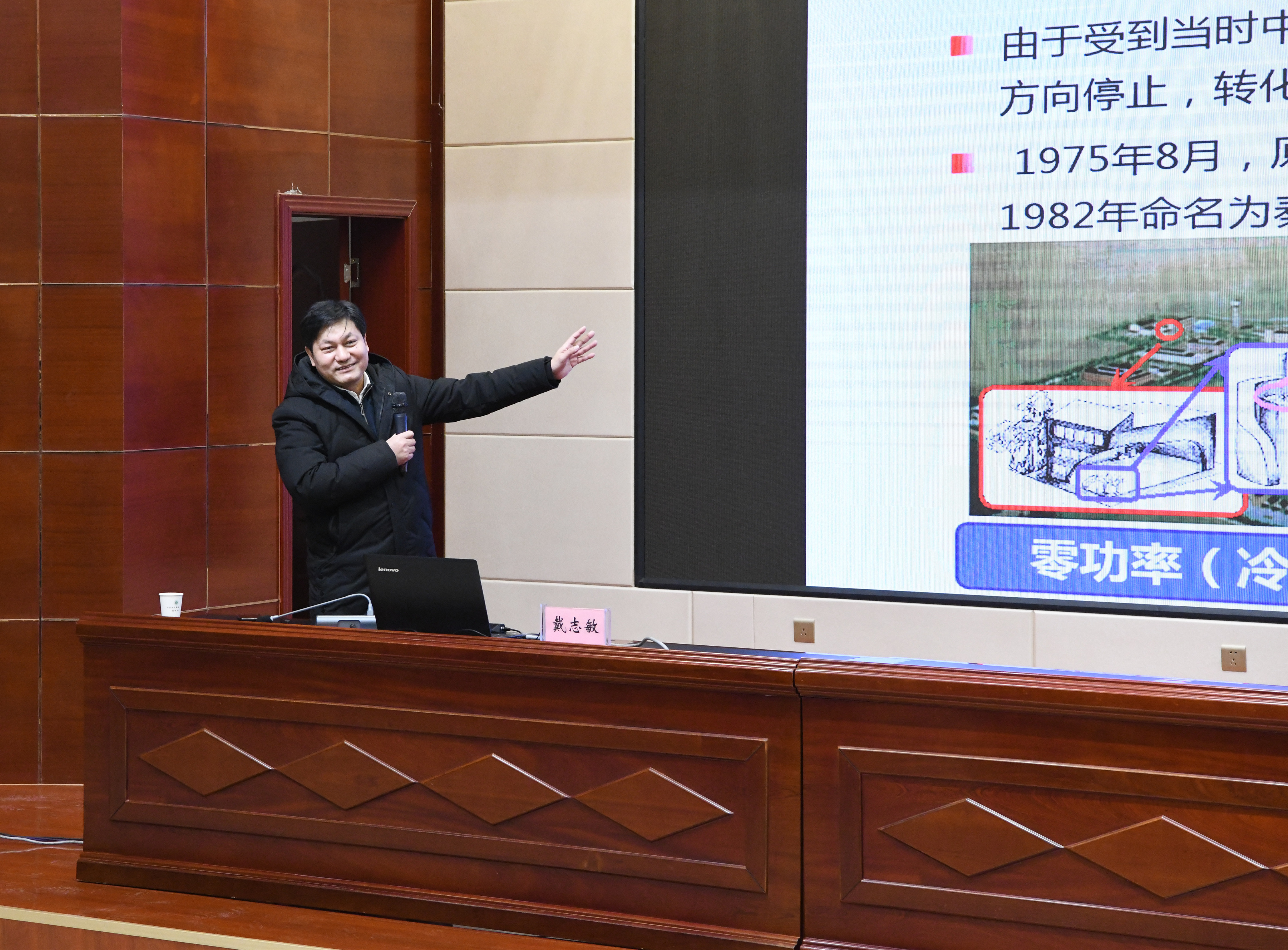 戴志敏從中國能源安全面臨的挑戰(zhàn)和機遇,清潔高效新能源利用,核能與釷基熔鹽堆運行,釷基熔鹽堆核能系統(tǒng)(TMSR )的研發(fā)進展,核能綜合利用及TMSR前景展望等方面向師生闡述了核能發(fā)展的趨勢,重點介紹了第四代反應(yīng)堆——釷基熔鹽堆的原理、特點和國際研究概況。