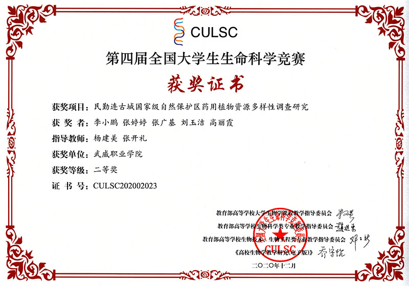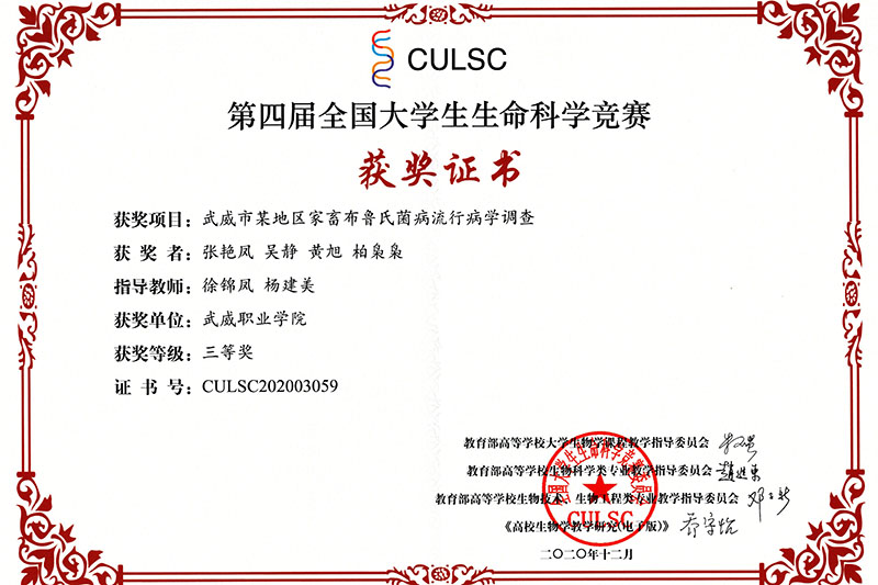 近日,第四屆全國(guó)大學(xué)生生命科學(xué)競(jìng)賽落下帷幕,經(jīng)過(guò)激烈角逐,我院推薦參賽的兩個(gè)項(xiàng)目獲得全國(guó)二等獎(jiǎng)三等獎(jiǎng),學(xué)院成為省內(nèi)獲得此次全國(guó)比賽獎(jiǎng)項(xiàng)的唯一高職院校。在此前舉辦的甘肅賽區(qū)比賽中,我院兩個(gè)項(xiàng)目獲得甘肅省一等獎(jiǎng)1項(xiàng),二等獎(jiǎng)1項(xiàng),被推薦參加全國(guó)總決賽。此次獲得全國(guó)競(jìng)賽獲獎(jiǎng)不僅填補(bǔ)了我院學(xué)生在全國(guó)競(jìng)賽中獲獎(jiǎng)的空白,也為學(xué)院創(chuàng)建“雙高”院校增添了重要成果。
