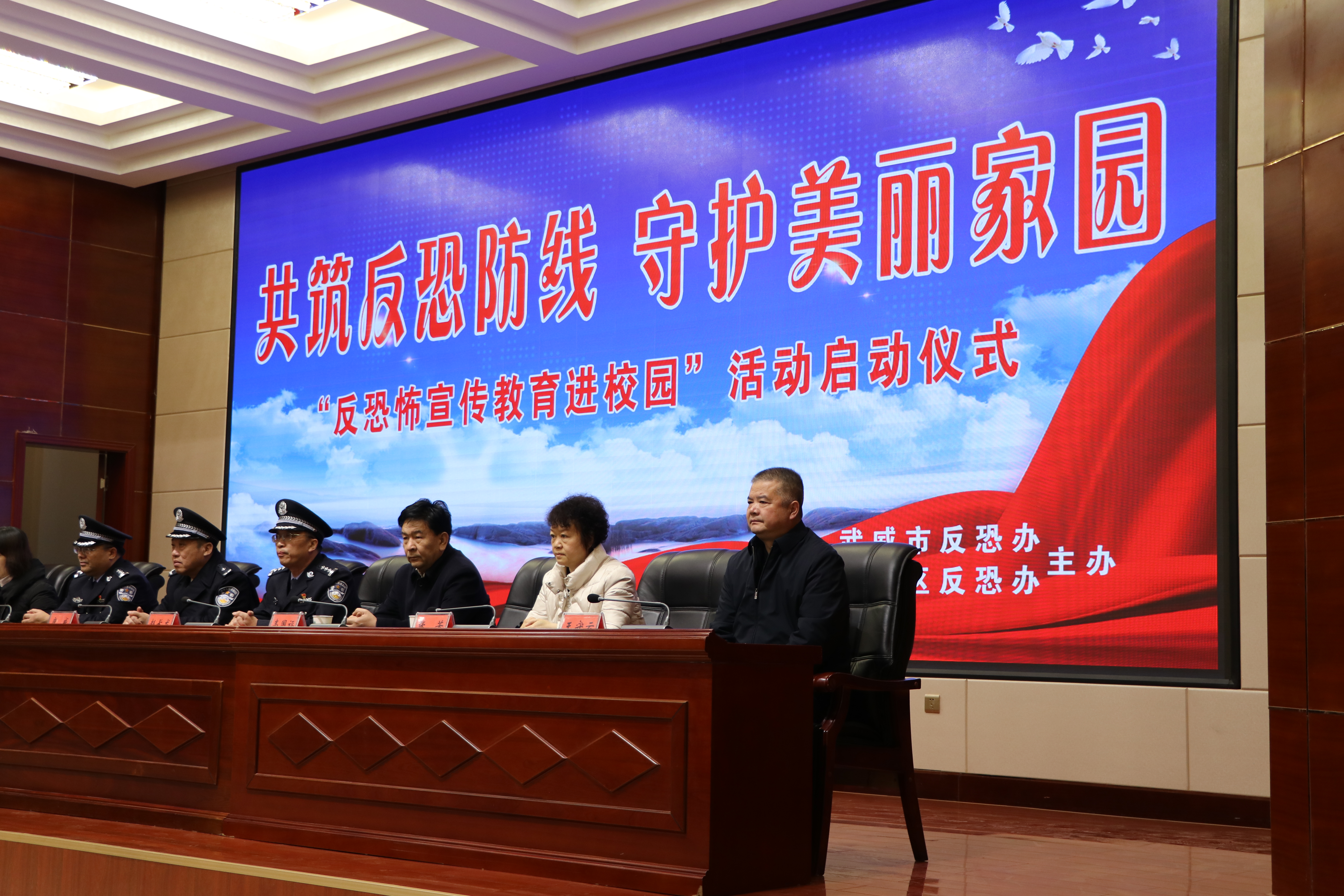啟動儀式在雄壯的國歌聲中開始。武威市反恐怖辦主任、市公安局常務副局長康威同志致辭并宣布“反恐怖宣傳教育進校園”活動啟動;市教育局副局長賈玉玲同志代表全市教育系統(tǒng)作了講話;學院學生代表王昊宣讀了倡議書。