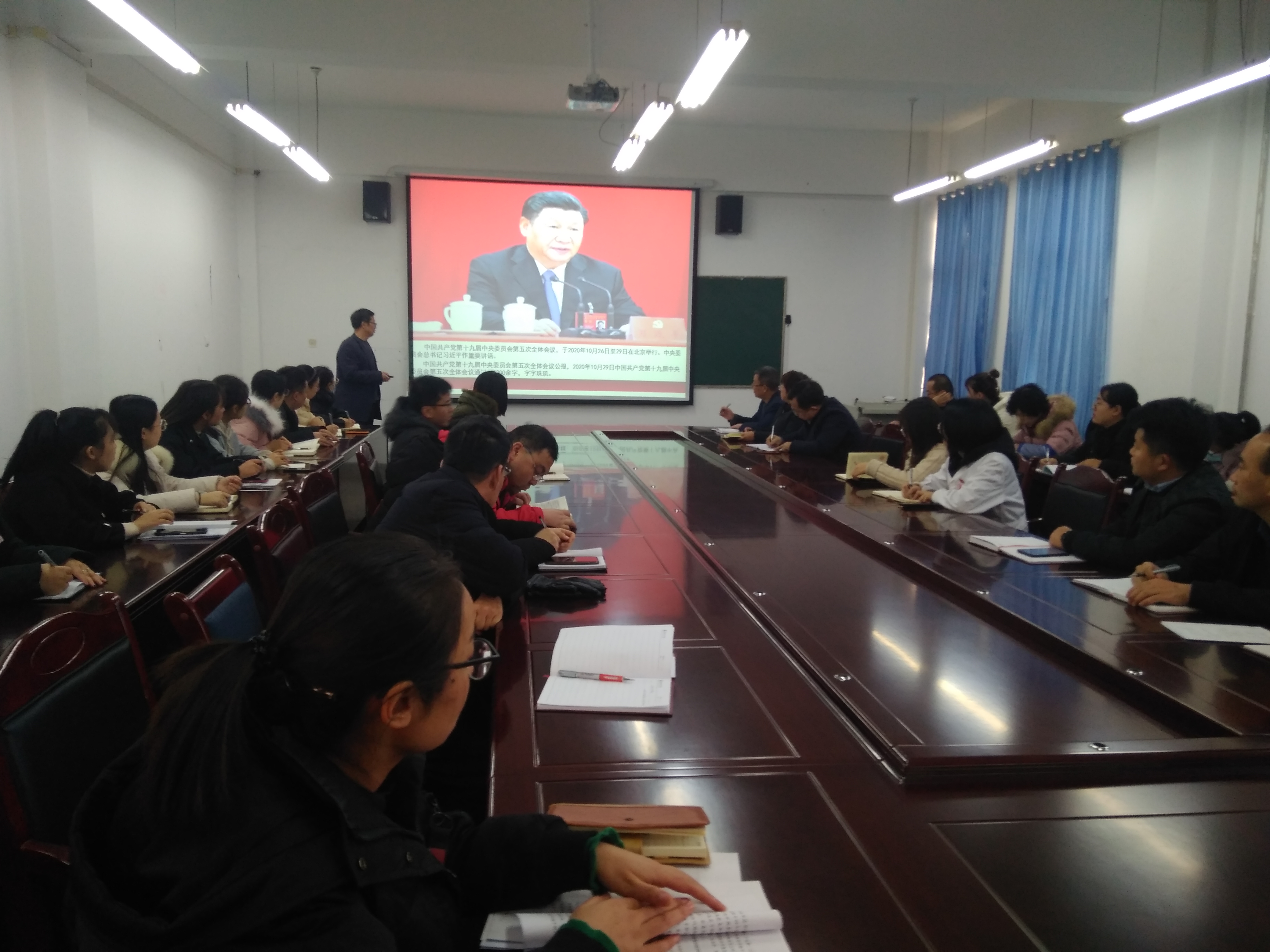 12月25日下午,學院黨委委員、副院長張開禮同志在尚德樓四樓會議室為藥學系、醫(yī)學技術系全體教師、入黨積極分子和學生代表講學習貫徹黨的十九屆五中全會精神專題黨課。
