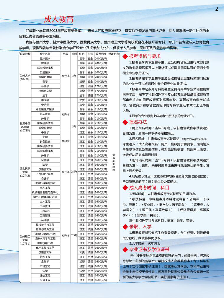 武威職業(yè)學院繼續(xù)教育學院2022年招生簡章