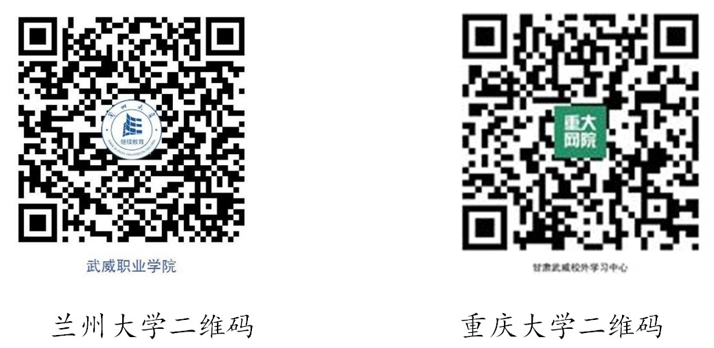 2.蘭州大學(xué)、重慶大學(xué)網(wǎng)絡(luò)教育報名老師電話(劉老師:18993563255)。疫情期間,為減少人員接觸,選擇報考蘭州大學(xué)、重慶大學(xué)的學(xué)員可通過二維碼預(yù)報名,預(yù)報名后等報名人員電話通知后再來學(xué)校進(jìn)行信息確認(rèn)和提交報名材料