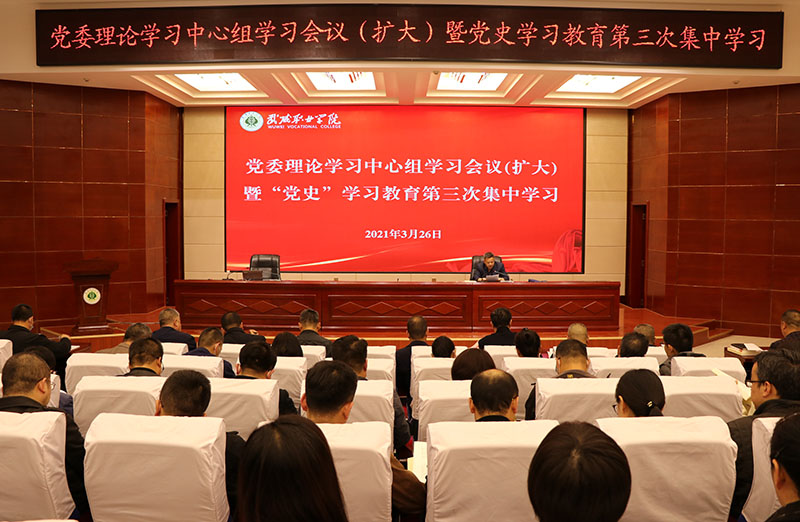 3月26日下午,學(xué)院黨委在菁英廳召開2021年3月黨委理論學(xué)習(xí)中心組學(xué)習(xí)會議。深入學(xué)習(xí)領(lǐng)會習(xí)近平總書記在中央黨校(國家行政學(xué)院)中青年干部培訓(xùn)班開班式上的重要講話精神。認(rèn)真學(xué)習(xí)研讀《中國共產(chǎn)黨簡史》《毛澤東、鄧小平、江澤民、胡錦濤關(guān)于中國共產(chǎn)黨歷史論述摘編》和《論中國共產(chǎn)黨歷史(習(xí)近平)》中的篇目章節(jié)。