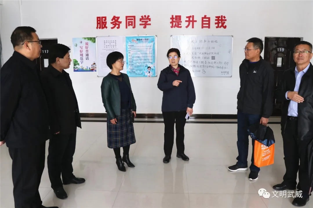 3月31日,市人大常委會(huì)黨組書記、主任周曉紅到包抓的武威職業(yè)學(xué)院調(diào)研督導(dǎo)創(chuàng)建全國(guó)文明城市工作。