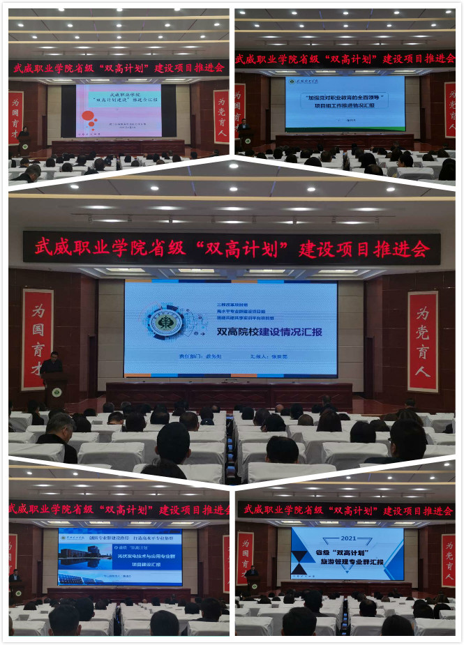 黨委書記、院長(zhǎng)趙明在講話中指出,習(xí)近平總書記的重要指示和李克強(qiáng)總理的批示,為我們奮力構(gòu)建高質(zhì)量職業(yè)教育體系指明了方向。學(xué)院成功入選省級(jí)“雙高計(jì)劃”建設(shè)單位,是學(xué)院發(fā)展歷程上的又一里程碑,為學(xué)院高質(zhì)量發(fā)展注入了新動(dòng)能,帶來了新機(jī)遇。我們既為前期工作成效感到欣喜,也要認(rèn)清當(dāng)前形勢(shì)和未來發(fā)展的壓力與緊迫感,抓住這次契機(jī),提升自身硬實(shí)力和軟實(shí)力。在未來幾年,把“雙高計(jì)劃”建設(shè)作為學(xué)院的中心工作和改革發(fā)展的政治任務(wù)。他提出五點(diǎn)工作要求,一是要充分發(fā)揮黨組織的戰(zhàn)斗堡壘作用。以習(xí)近平新時(shí)代中國(guó)特色社會(huì)主義思想為指導(dǎo),加強(qiáng)黨對(duì)“雙高計(jì)劃”建設(shè)項(xiàng)目的全面領(lǐng)導(dǎo),以一流黨建引領(lǐng)高水平建設(shè),切實(shí)把黨建工作與項(xiàng)目建設(shè)同部署、同落實(shí)、同考評(píng)。二是要加強(qiáng)領(lǐng)導(dǎo),強(qiáng)化責(zé)任?!半p高計(jì)劃”的建設(shè)不能寫在紙上,講在嘴上,而要落實(shí)在行動(dòng)上,所有領(lǐng)導(dǎo)干部要提高擔(dān)當(dāng)意識(shí)、服務(wù)意識(shí)、發(fā)展意識(shí),立足當(dāng)前,著眼長(zhǎng)遠(yuǎn),攻難克堅(jiān),為學(xué)?!半p高”建設(shè)做貢獻(xiàn)。三是要加強(qiáng)融合,提升工作效能。將“雙高計(jì)劃”建設(shè)與提質(zhì)培優(yōu)、技能甘肅等重點(diǎn)工作融入日常,同步謀劃、一體推進(jìn),確保項(xiàng)目建設(shè)有序進(jìn)行。對(duì)標(biāo)國(guó)家高水平院校和高水平專業(yè)群進(jìn)行高標(biāo)準(zhǔn)謀劃,完善高水平成果培育機(jī)制,主動(dòng)提標(biāo)、自我加壓,持續(xù)發(fā)力、持續(xù)攻堅(jiān),形成更多更好的成果。四是要改革創(chuàng)新,加強(qiáng)績(jī)效管理。進(jìn)一步加強(qiáng)制度建設(shè),持續(xù)創(chuàng)新管理體系、完善管理制度、創(chuàng)新管理辦法,規(guī)范辦事流程,完善績(jī)效考核辦法,切實(shí)增強(qiáng)績(jī)效考核的導(dǎo)向性、方向性、引領(lǐng)性,激發(fā)廣大教職員工參與“雙高計(jì)劃”建設(shè)的積極性、主動(dòng)性。五是健全督導(dǎo)機(jī)制,加強(qiáng)監(jiān)管。通過開展定期或不定期、形式多樣的督查工作,切實(shí)加強(qiáng)管理,推動(dòng)任務(wù)落實(shí)。