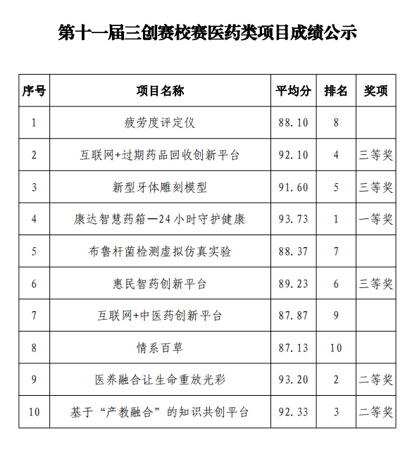 按照第十一屆三創(chuàng)賽省賽組委會(huì)要求,學(xué)院于4月24日在創(chuàng)新創(chuàng)業(yè)中心舉辦了校賽,經(jīng)學(xué)生團(tuán)隊(duì)申報(bào)、現(xiàn)場(chǎng)答辯及專家評(píng)審環(huán)節(jié),校賽已圓滿完成。按照校賽方案,一等獎(jiǎng)不超過(guò)參賽隊(duì)數(shù)的 10%,二等獎(jiǎng)不超過(guò)參賽隊(duì)數(shù)的 20%,三等獎(jiǎng)不超過(guò)參賽隊(duì)數(shù)的 30%?,F(xiàn)將第十一屆三創(chuàng)賽校賽獲獎(jiǎng)項(xiàng)目成績(jī)和獲獎(jiǎng)名次予以公示,公示期三日。