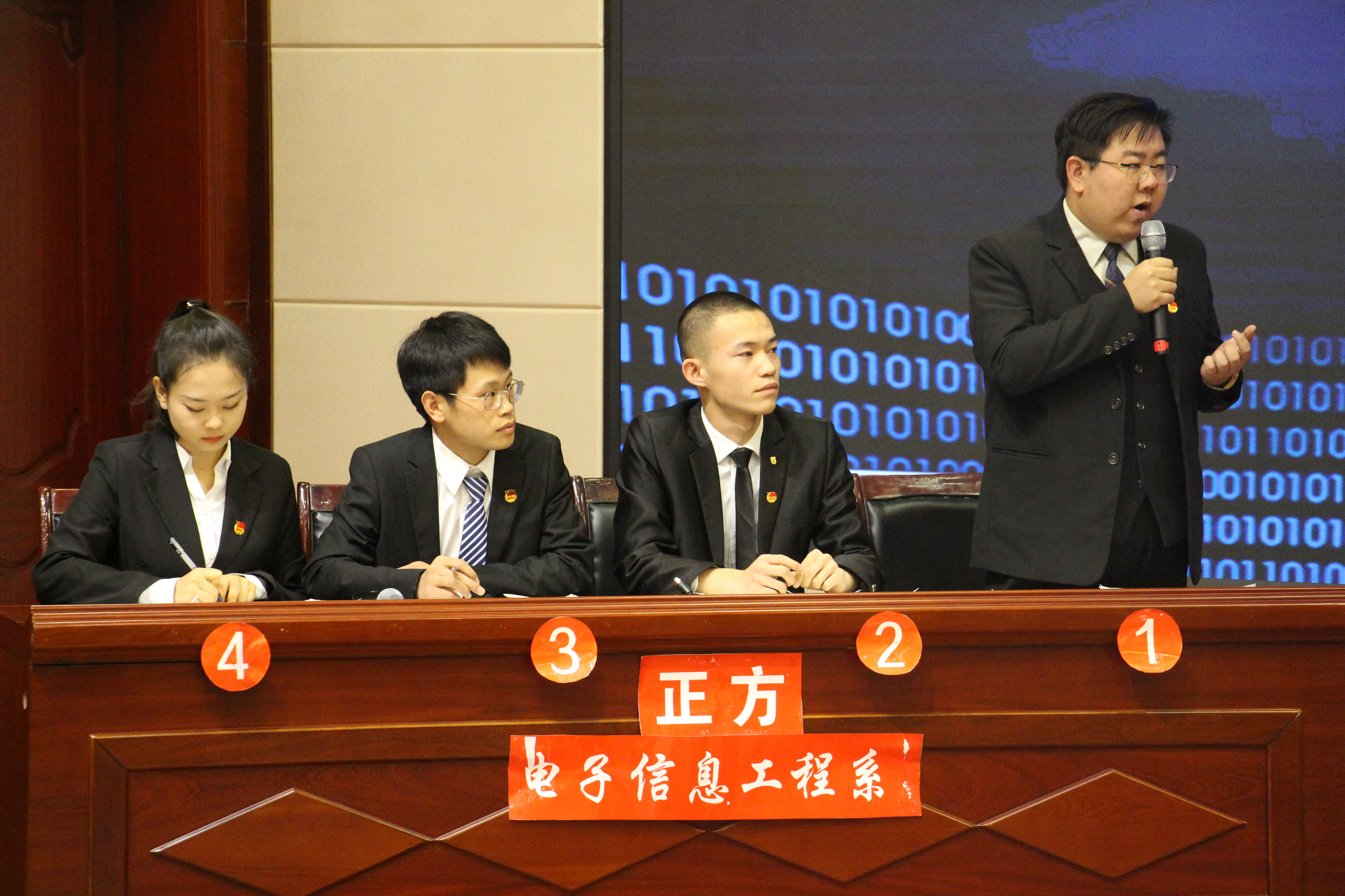 經(jīng)過11場次的比賽,電子信息工程系代表隊和藥學(xué)系代表隊進入最后決賽。決賽現(xiàn)場,正反雙方針對高素質(zhì)技術(shù)技能人才以“仁”還是以“智”為先拉開激烈交戰(zhàn)。雙方選手在立論、駁立論、攻辯等環(huán)節(jié)中思路清晰,引經(jīng)據(jù)典,高潮迭起。自由辯論環(huán)節(jié),雙方唇槍舌戰(zhàn),針鋒相對,步步為營,愈辯愈烈,精彩紛呈,觀眾也積極互動,現(xiàn)場氣氛十分活躍。