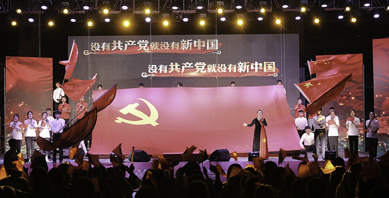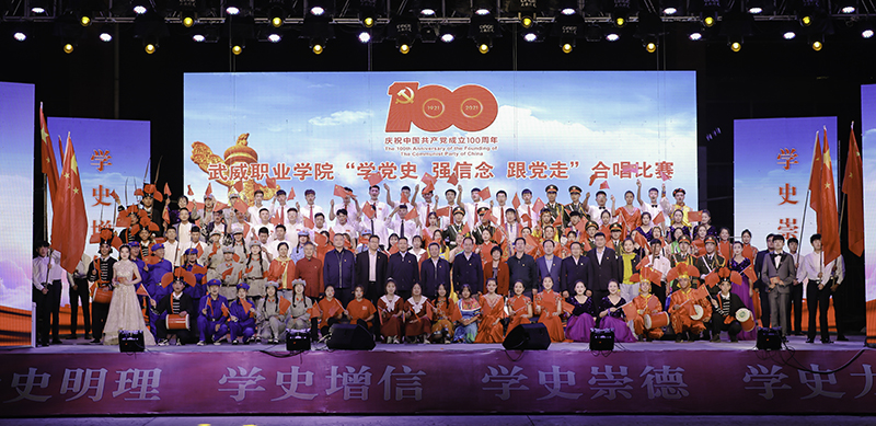 “沒有共產(chǎn)黨就沒有新中國,共產(chǎn)黨辛勞為民族,共產(chǎn)黨他一心救中國,他指給了人民解放的道路……”激昂的旋律,嘹亮的歌聲,揮舞的國旗,讓武威職業(yè)學院的校園在紅色經(jīng)典的渲染下,更顯蓬勃生機。