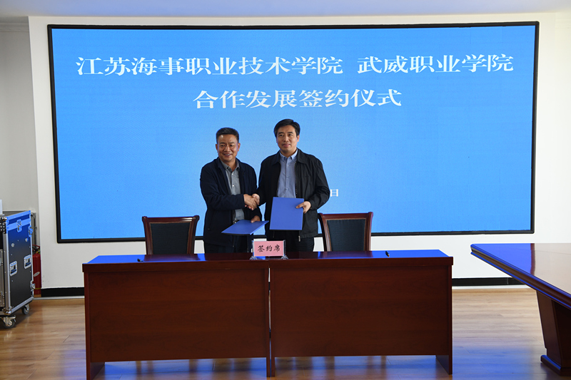 座談會后,趙明與劉紅明代表雙方就武威職業(yè)學院與江蘇海事職業(yè)技術(shù)學院合作發(fā)展簽訂了協(xié)議,雙方將在學院發(fā)展、學科專業(yè)建設(shè)、師資隊伍建設(shè)、人才培養(yǎng)、管理水平提升、產(chǎn)教融合等方面建立協(xié)作機制,使雙方實現(xiàn)優(yōu)勢互補,辦學實力得到顯著提升。