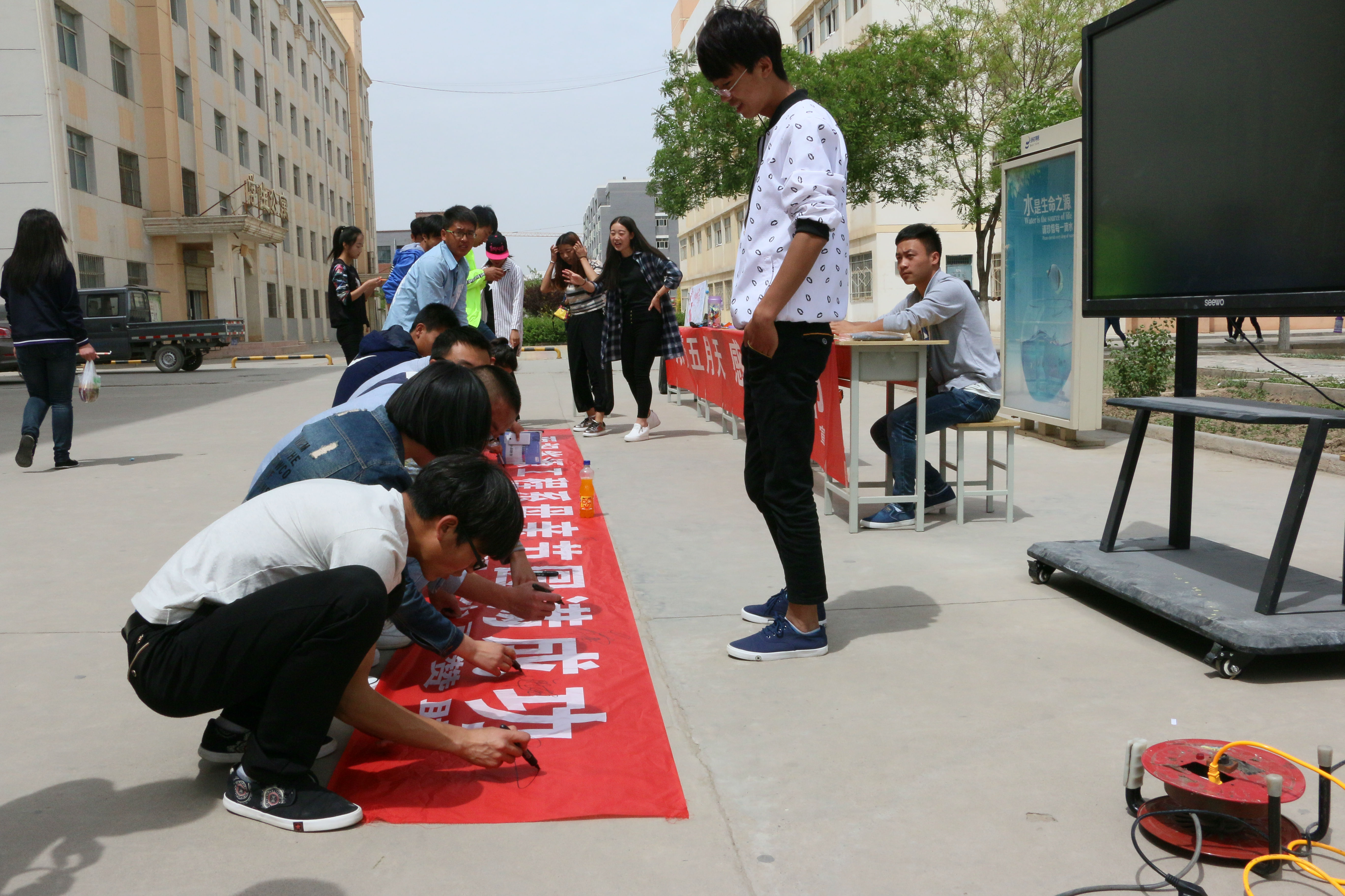 今天早晨十一點(diǎn)左右,能源系全體學(xué)生會(huì)成員以為這次的活動(dòng)準(zhǔn)備好了一切,有母親節(jié)的海報(bào)、母親節(jié)許愿瓶、對媽媽想說的話的展板、以及自己對媽媽祝福的簽名