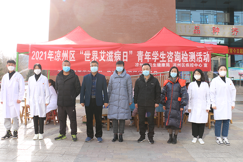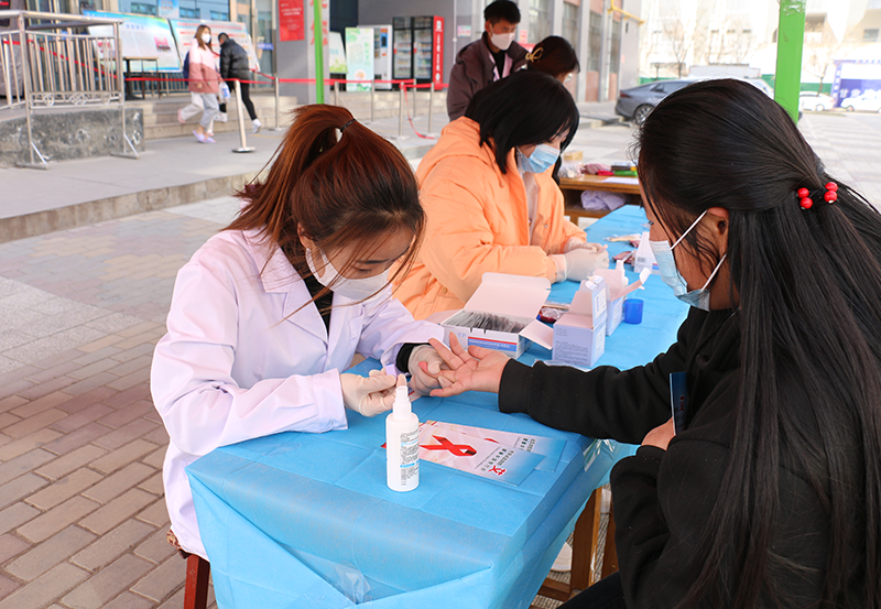 12月1日,學(xué)院護(hù)理系紅絲帶協(xié)會(huì)聯(lián)合涼州區(qū)衛(wèi)生健康局、涼州區(qū)疾控中心,在二號(hào)食堂門口及荷花池開展了“世界艾滋病日”青年學(xué)生咨詢檢測(cè)活動(dòng),活動(dòng)中對(duì)260余名學(xué)生進(jìn)行了免費(fèi)艾滋病檢測(cè),并予以獎(jiǎng)品鼓勵(lì),組織了防艾知識(shí)宣傳志愿隊(duì)伍現(xiàn)場(chǎng)發(fā)放宣傳手冊(cè),制作并贈(zèng)送紅絲帶標(biāo)志400余個(gè)。