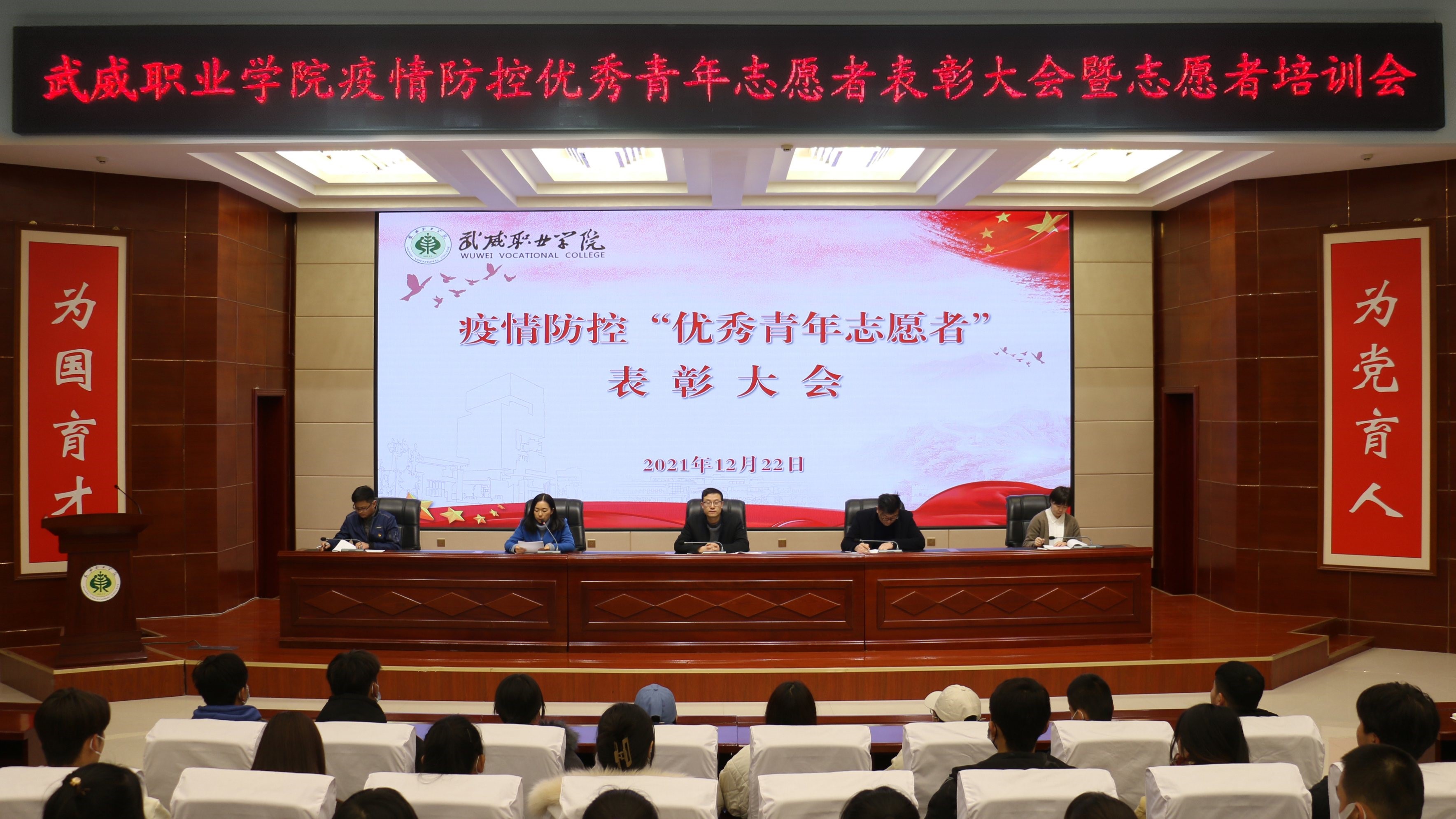 為表彰學(xué)院疫情防控期間涌現(xiàn)出的先進(jìn)典型,弘揚(yáng)偉大的抗疫精神,進(jìn)一步增強(qiáng)學(xué)院青年志愿者協(xié)會(huì)的組織凝聚力和團(tuán)隊(duì)協(xié)作力,院團(tuán)委于12月22日在學(xué)生發(fā)展中心菁英廳召開疫情防控優(yōu)秀青年志愿者表彰大會(huì)暨志愿者培訓(xùn)會(huì),院團(tuán)委全體教師、志愿者代表參加了大會(huì)。