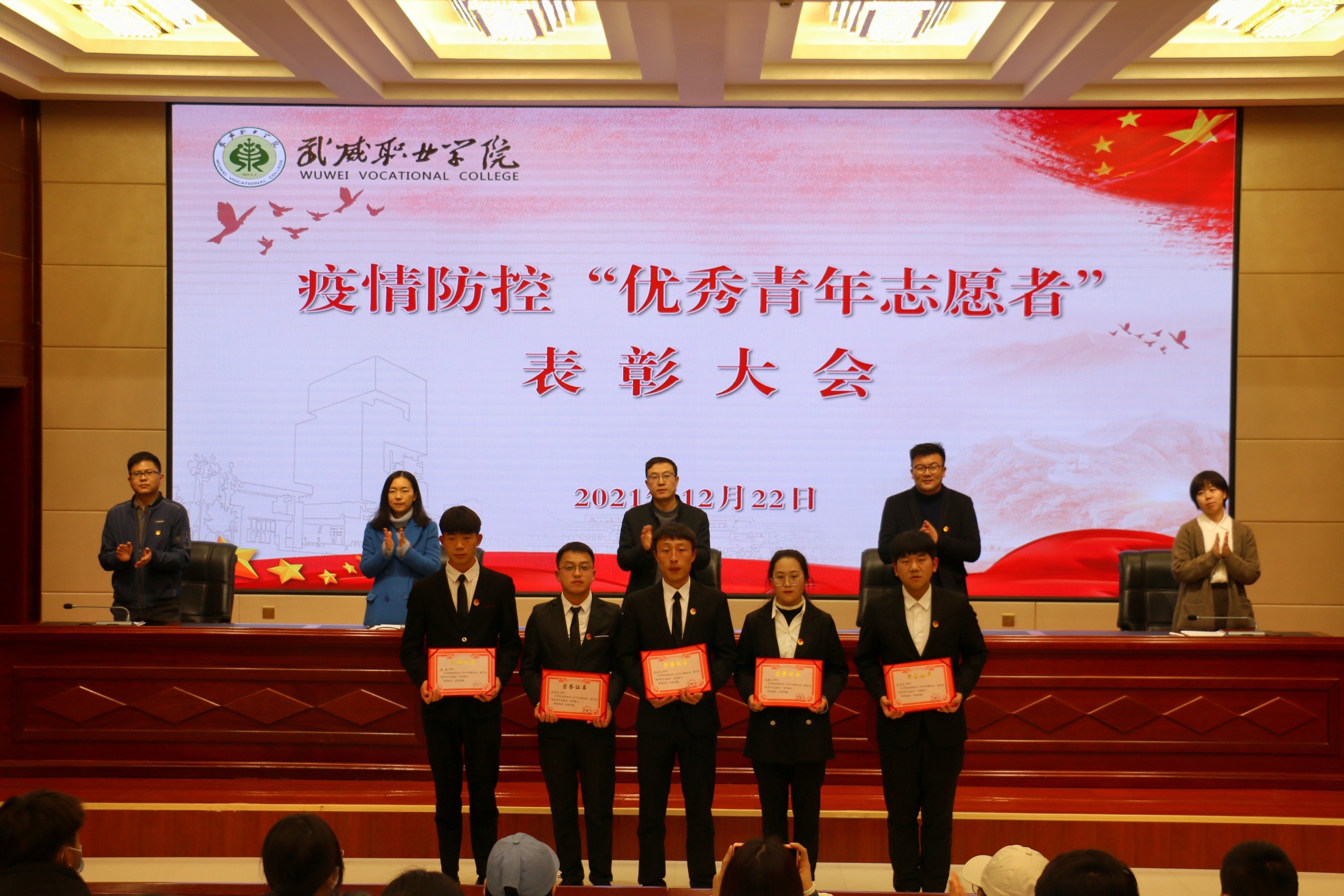 在表彰大會(huì)上,宣讀了《武威職業(yè)學(xué)院關(guān)于對(duì)疫情防控期間優(yōu)秀青年志愿者進(jìn)行通報(bào)表揚(yáng)的決定》,為疫情防控期間優(yōu)秀青年志愿者代表頒發(fā)了榮譽(yù)證書。