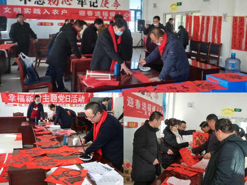 學(xué)院在橫梁鄉(xiāng)幸福新村、康寧新村設(shè)置了2個創(chuàng)作點,活動現(xiàn)場氛圍喜慶熱烈,書畫教授現(xiàn)場揮毫潑墨,激情抒寫,不同字體的大“?!弊郑t紅的春聯(lián),透露著洋洋喜氣,書寫出橫梁鄉(xiāng)群眾的美好愿景。