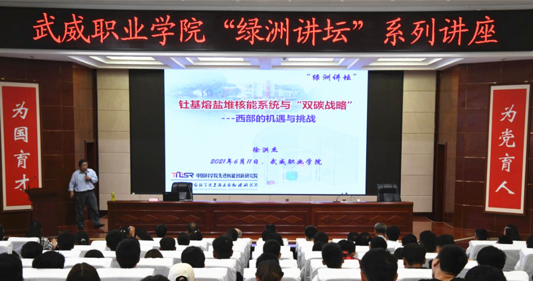 在全院上下深入開展黨史學(xué)習(xí)教育之際,為進(jìn)一步推進(jìn)省級“雙高計劃”建設(shè),促進(jìn)中科低碳新能源技術(shù)學(xué)院創(chuàng)新發(fā)展,深化學(xué)院教育教學(xué)改革,6月11日,學(xué)院第45期“綠洲講壇”開講,本次論壇邀請中國科學(xué)院上海應(yīng)用物理研究所研究員、博士生導(dǎo)師兼中國科學(xué)院先進(jìn)核能創(chuàng)新研究院院長徐洪杰為全院師生作題為《基于釷基熔鹽堆的風(fēng)光核儲多能融合系統(tǒng)——西部“雙碳戰(zhàn)略”之路的機(jī)遇和挑戰(zhàn)》的主旨報告。中國科學(xué)院上海應(yīng)用物理研究所黨委書記、副所長趙明華研究員,武威園區(qū)園區(qū)辦主任趙先堂,聯(lián)合辦學(xué)主管兼中科低碳新能源技術(shù)學(xué)院院長助理米麗娟博士出席,學(xué)院領(lǐng)導(dǎo)班子成員、中層干部、各院系師生代表共220余人參加報告會。報告會由學(xué)院黨委書記、院長趙明主持。