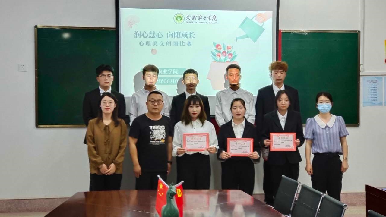 6月1日,現(xiàn)代農(nóng)業(yè)學(xué)院在行樹樓309舉辦了以“潤(rùn)心慧心,向陽成長(zhǎng)”心理美文朗誦比賽,共8名學(xué)生選手參加比賽,3位老師參與活動(dòng)評(píng)審。此次心理美文朗誦比賽讓學(xué)生在感受心理美文魅力的同時(shí),涵養(yǎng)了身心,有利于塑造“自尊自信,理性和平,積極向上” 的健康心態(tài),對(duì)于提高學(xué)生的心理素質(zhì),塑造積極向上的心態(tài),培養(yǎng)良好的心理品質(zhì),營(yíng)造和諧的校園文化起到了積極的作用。