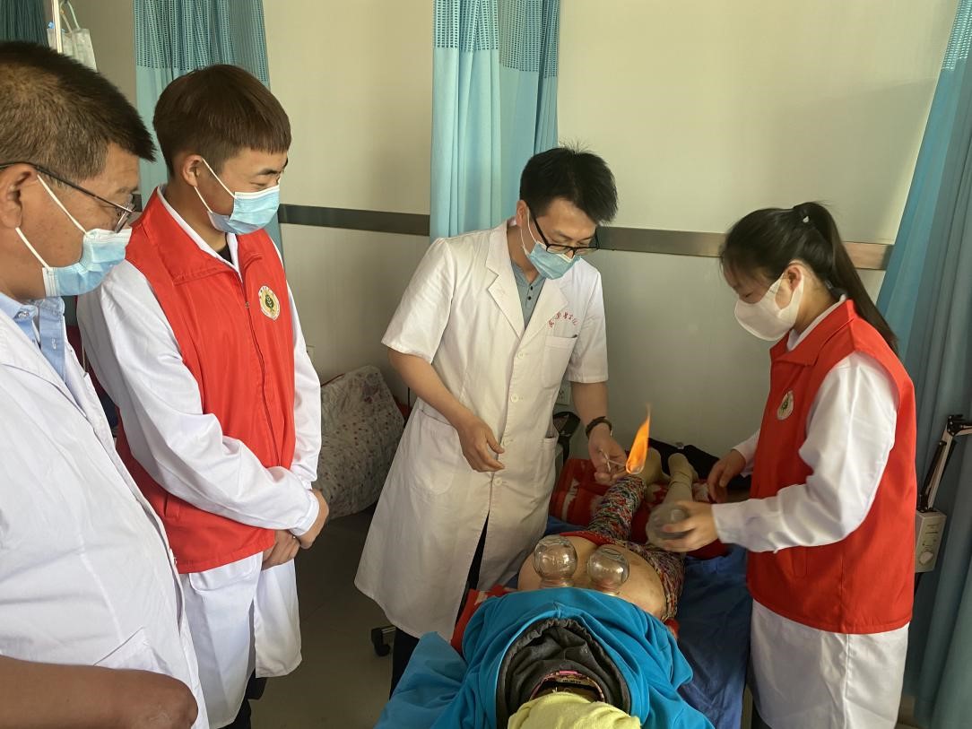 圖4- 對(duì)雙城鎮(zhèn)安全村民免費(fèi)進(jìn)行拔罐治療