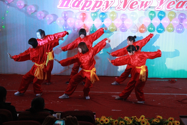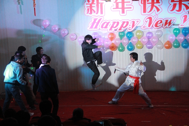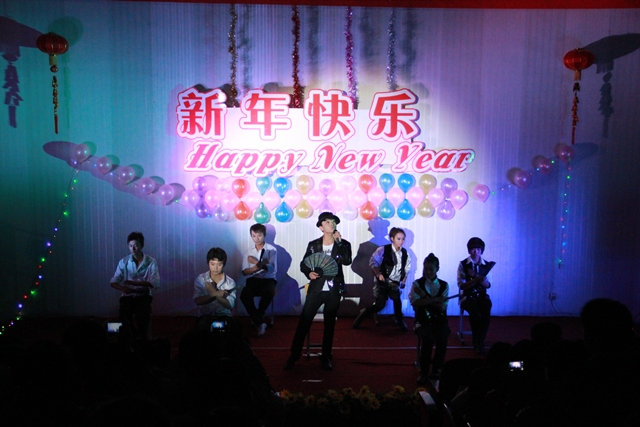 我系趙磊老師的薩克斯獨(dú)奏節(jié)奏明朗,富有磁力,優(yōu)美的旋律深深地吸引了全體觀眾。12級(jí)光熱班的張新輝,張一凡等同學(xué)反串《甄嬛傳》令現(xiàn)場(chǎng)的觀眾捧腹大笑。一首《祝?!返睦收b牽掛了所有觀眾,武術(shù)《中國(guó)功夫》令得全場(chǎng)驚呼,舞蹈《江南style》的精彩演出吸引了所有人的眼球。最后晚會(huì)在《同一首歌》的大合唱中緩緩落幕。