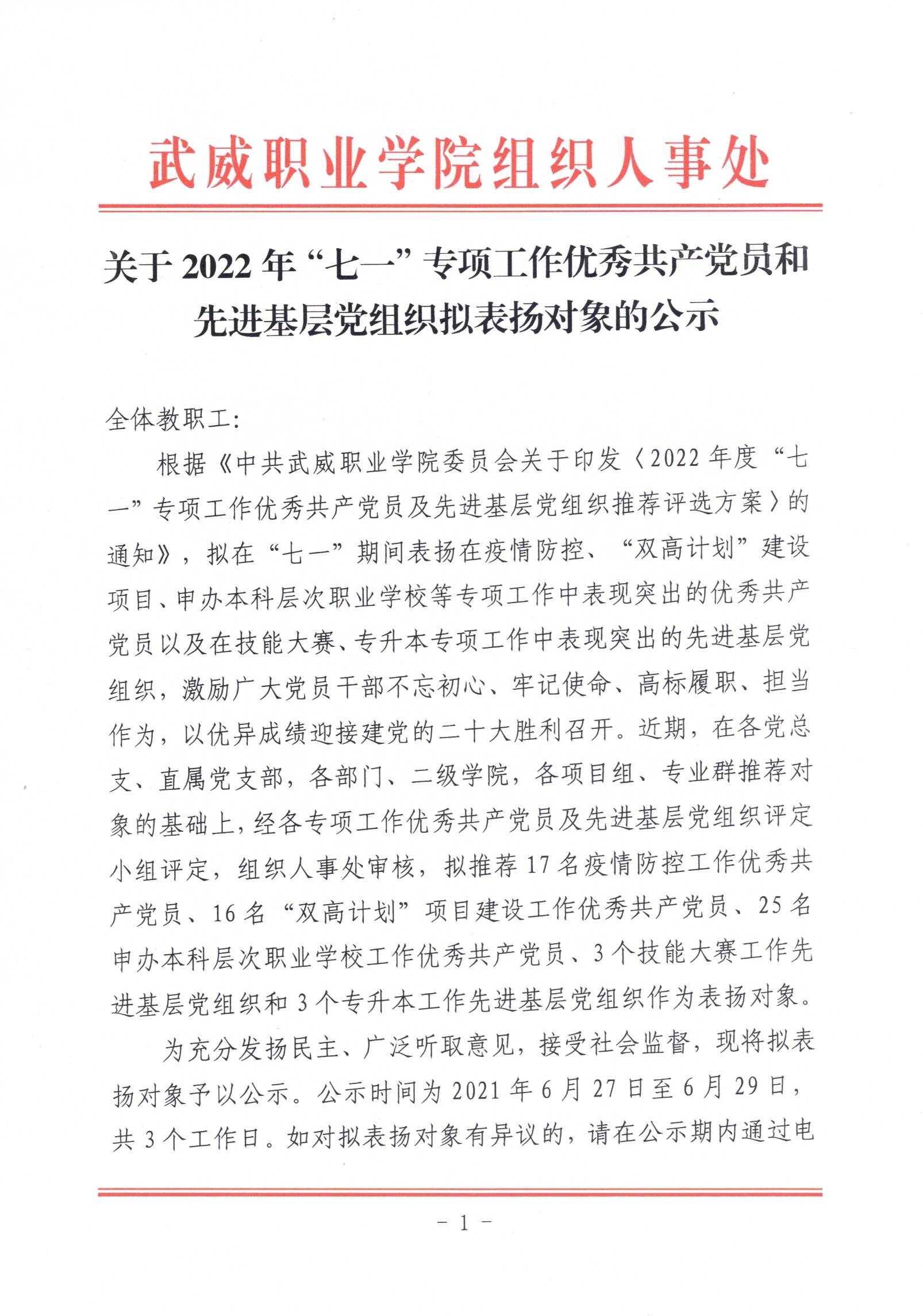 關(guān)于2022年“七一”專項(xiàng)工作優(yōu)秀共產(chǎn)黨員和先進(jìn)基層黨組織擬表揚(yáng)對(duì)象的公示