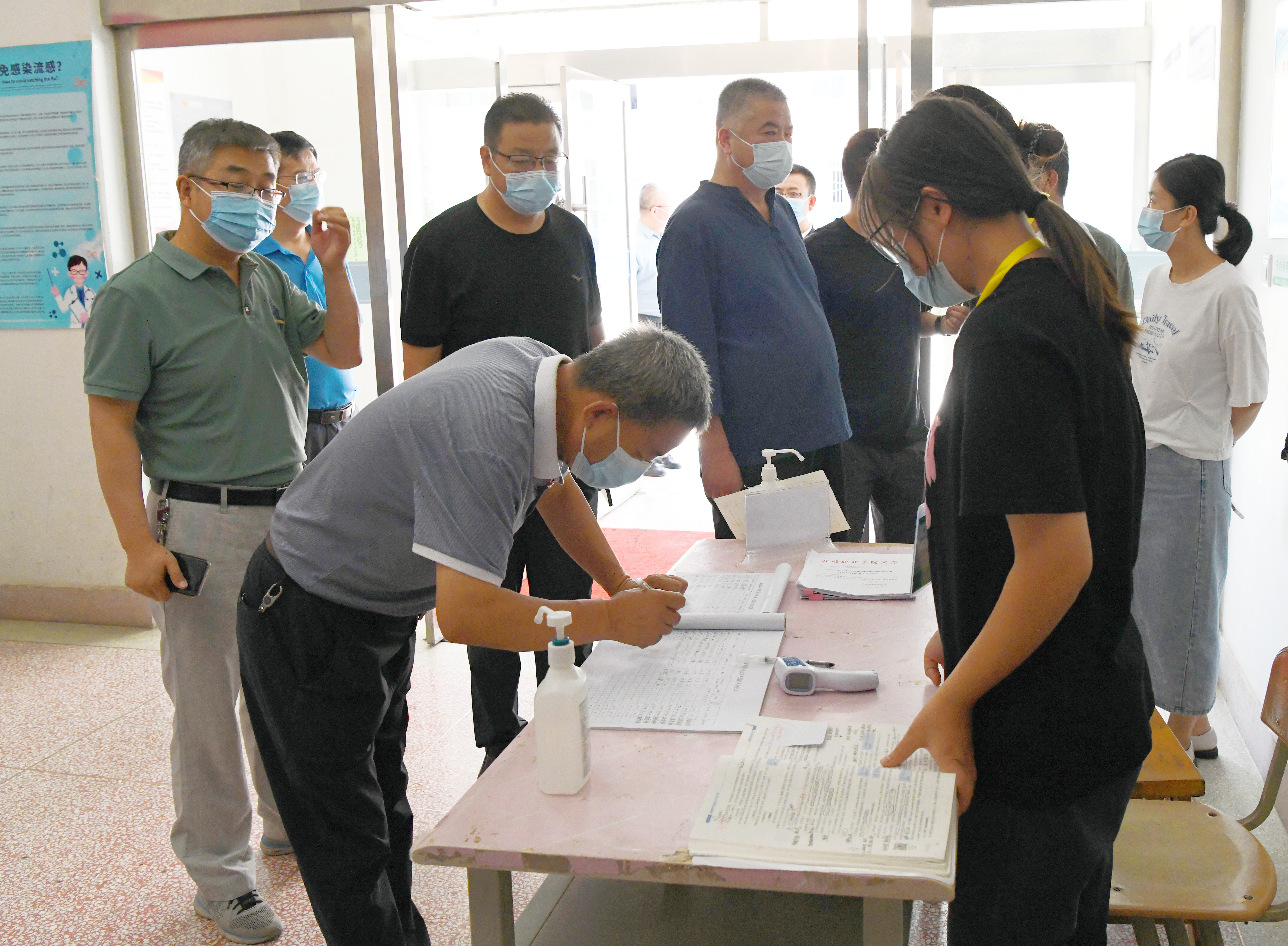 趙明一行在學(xué)校東大門(mén)現(xiàn)場(chǎng)查看了進(jìn)入人員體溫測(cè)量、一碼三查查驗(yàn)和進(jìn)出車(chē)輛管控情況,強(qiáng)調(diào)大門(mén)是學(xué)校疫情防控的第一道關(guān)口,值守人員必須嚴(yán)格按照上級(jí)要求和學(xué)校防控安排,嚴(yán)格落實(shí)各項(xiàng)管控措施,杜絕疫情輸入,確保校園安全穩(wěn)定。