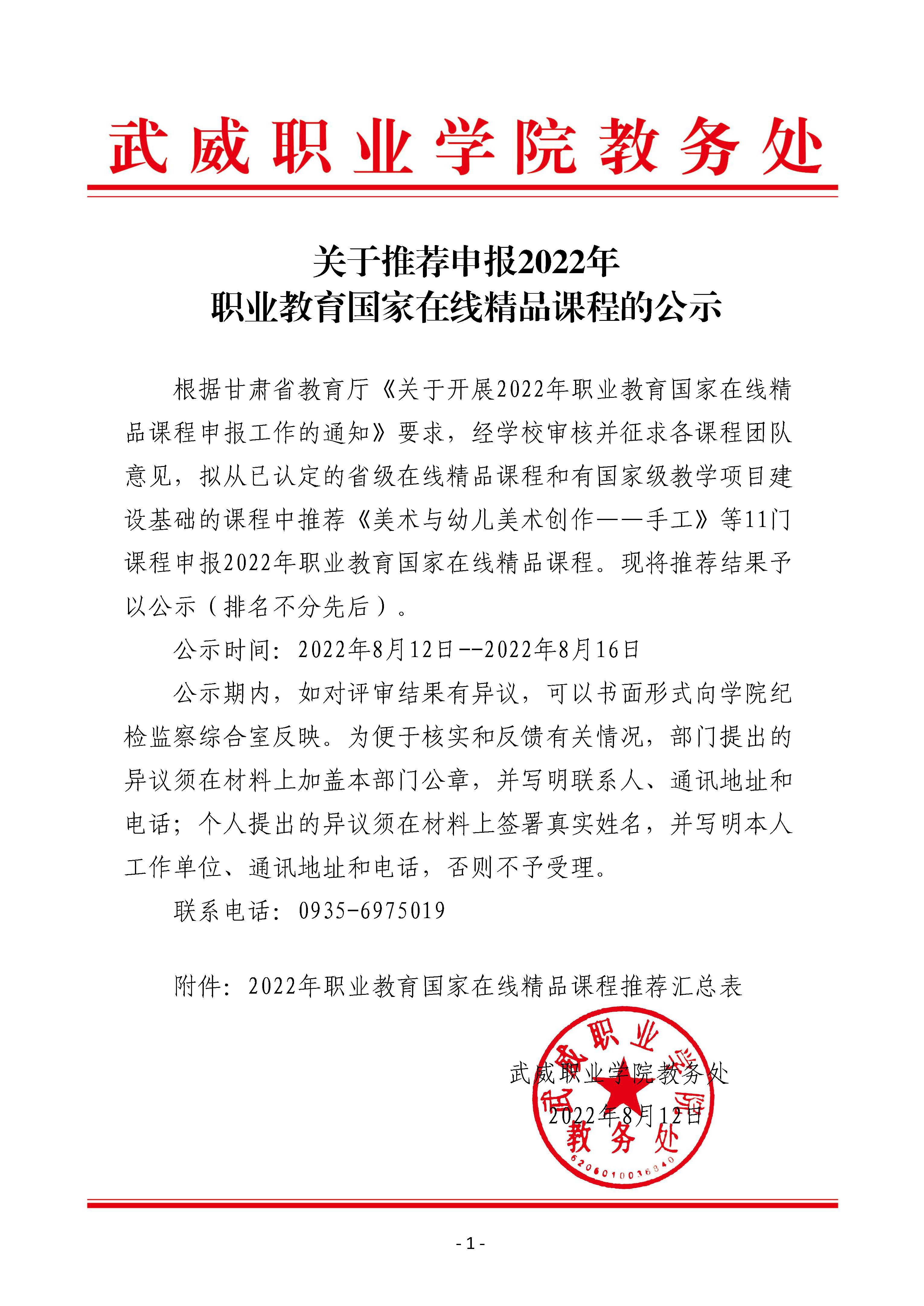 關(guān)于推薦申報(bào)2022年職業(yè)教育國家在線精品課課程的公示
