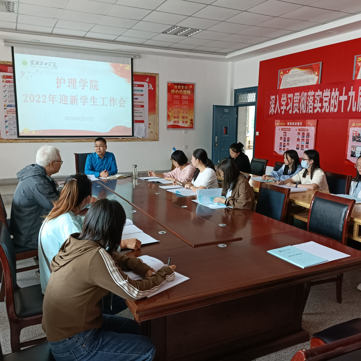為確保2022級(jí)新生入學(xué)工作安全、有序、高效進(jìn)行,8月31日,護(hù)理學(xué)院在明遠(yuǎn)樓103會(huì)議室召開(kāi)2022年迎新學(xué)生工作部署專(zhuān)題會(huì)議。護(hù)理學(xué)院黨總支書(shū)記張建輝出席會(huì)議,會(huì)議由護(hù)理學(xué)院分團(tuán)委書(shū)記楊杰主持,全體輔導(dǎo)員和新生班主任參加了會(huì)議。