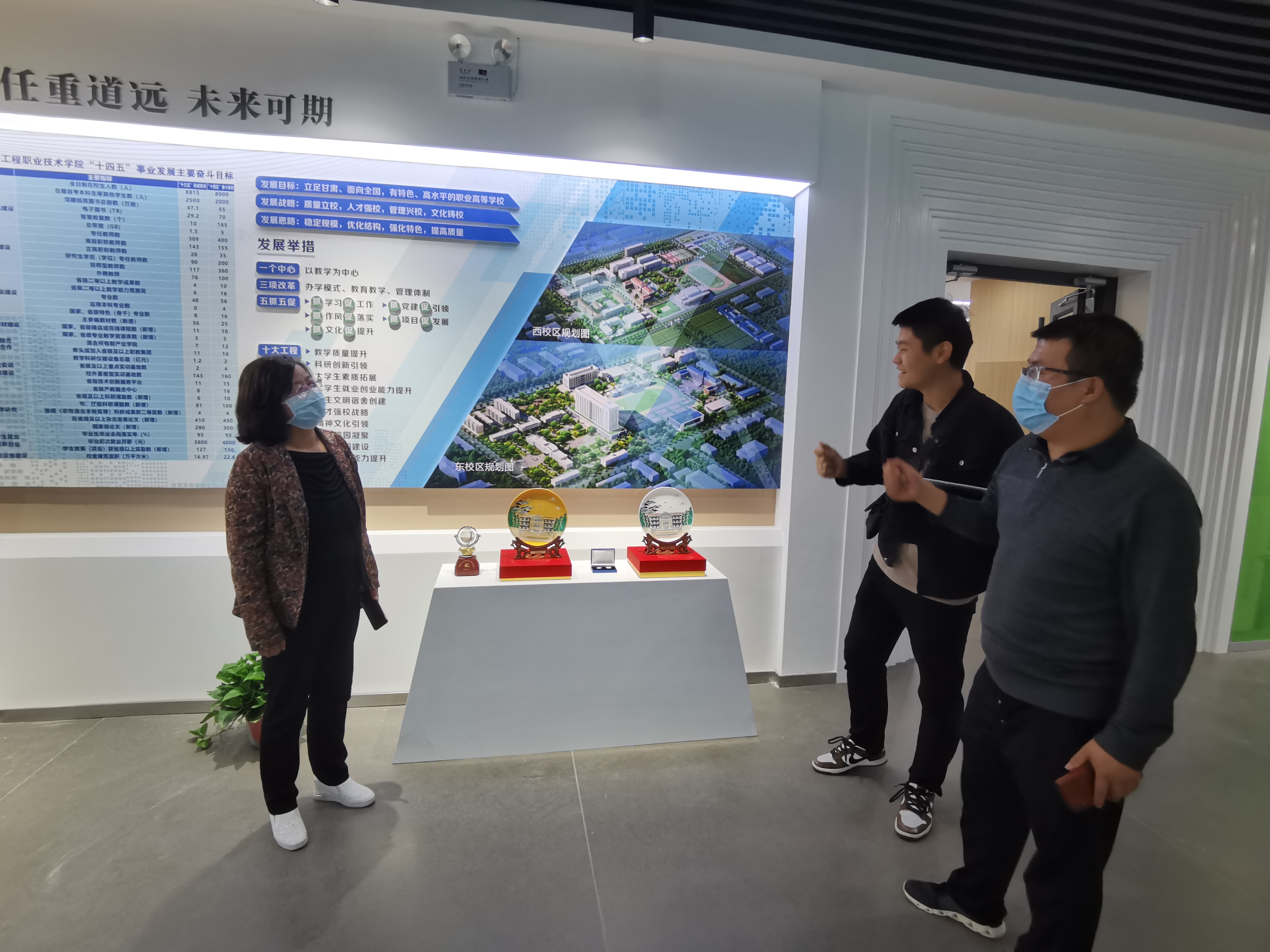 為全面推進“雙高計劃”學校建設,提升圖書館服務水平,營造“書香校園”,將圖書館打造成人性化、智能化、專業(yè)化的綠色學習空間。近日,圖書館館長楊如松、副館長蔡濟眾、館員楊建盛三人到甘肅省畜牧工程職業(yè)技術學院圖書館考察學習,在甘肅省畜牧工程職業(yè)技術學院圖書館館長解玉寶陪同下,參觀了該校圖書館讀書吧、校史館、黨史館、“挑戰(zhàn)杯”獲獎作品展覽館等處,解玉寶講解了該館設計理念及建設過程中的側(cè)重點和展示重點。楊如松就現(xiàn)在圖書館裝發(fā)展趨勢、圖書館管理辦法、學生借閱量等實際問題同解玉寶進行了相互交流。