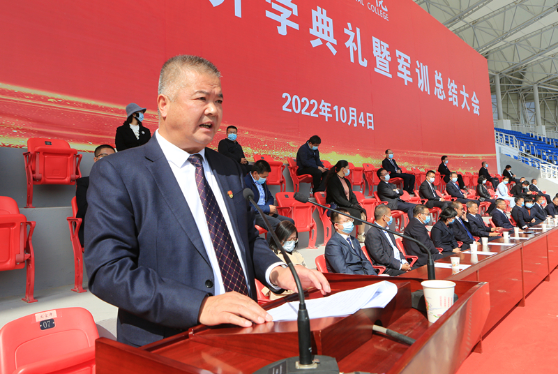 金秋的校園陽光明媚,嘹亮的歌聲唱響青春。10月4日上午9時(shí),在莊嚴(yán)隆重的升國旗儀式結(jié)束后,2022級新生開學(xué)典禮暨軍訓(xùn)總結(jié)大會(huì)在體育場拉開了帷幕。學(xué)校黨委書記、校長趙明出席大會(huì)并講話,涼州區(qū)人武部上校政委丁俊強(qiáng)受邀出席。校領(lǐng)導(dǎo)翟存祥、王永緒、田迎春、何毅、陳曉煜、張開禮出席大會(huì)。大會(huì)由學(xué)校黨委委員、副校長王守云主持。