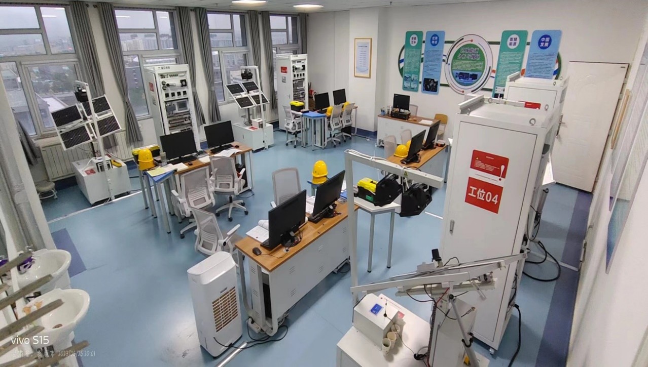 實(shí)訓(xùn)功能:本實(shí)訓(xùn)室擁有智慧新能源實(shí)訓(xùn)系統(tǒng)和智慧新能源實(shí)訓(xùn)系統(tǒng)2.0,包括工程環(huán)境模擬平臺(tái)、電子中心管控平臺(tái)、能源互聯(lián)網(wǎng)仿真規(guī)劃平臺(tái)三個(gè)核心應(yīng)用平臺(tái)及電子中心管控軟件、集中式環(huán)境管控軟件。智慧新能源實(shí)訓(xùn)系統(tǒng)高度集成了分布式能源發(fā)電技術(shù)、傳感技術(shù)、信息通信技術(shù)、自動(dòng)控制技術(shù)、供配電技術(shù)、能源管控技術(shù)和仿真規(guī)劃模擬技術(shù),能夠?qū)崿F(xiàn)從能源仿真規(guī)劃、新能源的產(chǎn)能模擬、能源管控、到并網(wǎng)發(fā)電和負(fù)載應(yīng)用的全過程模擬。系統(tǒng)采用模塊化積木式設(shè)計(jì)模式,能夠?qū)崿F(xiàn)學(xué)科遞進(jìn)式教學(xué),緊密對(duì)接產(chǎn)業(yè)發(fā)展需求,為培養(yǎng)具有工匠精神、創(chuàng)新思維和創(chuàng)新能力的技能型人才提供實(shí)踐平臺(tái)。