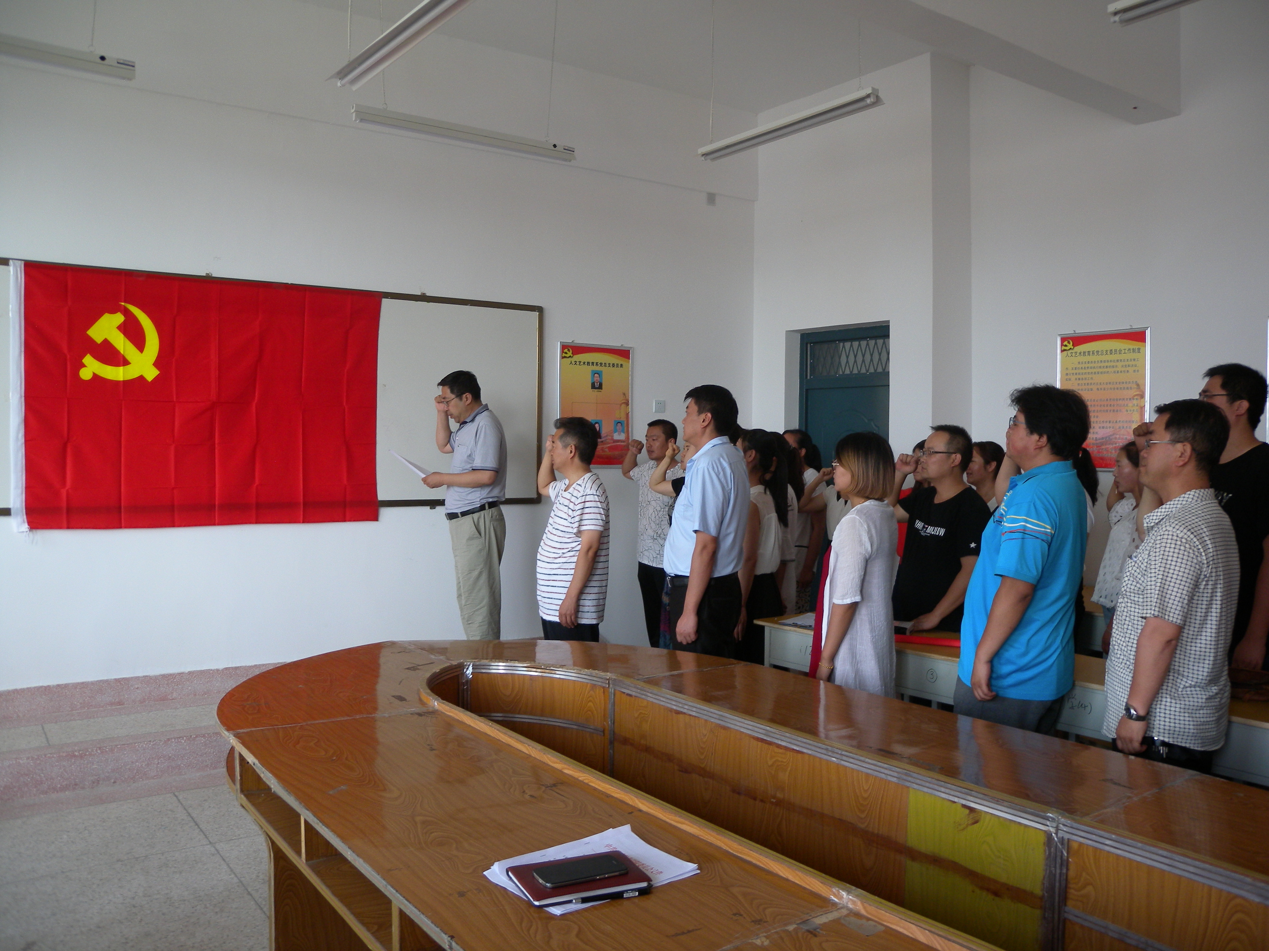 黨總支書記胡靜峰帶領(lǐng)全體黨員面對鮮紅的黨旗,重溫入黨誓詞:“我志愿加入中國共產(chǎn)黨,擁護黨的綱領(lǐng),遵守黨的章程……”。莊嚴肅穆的重溫入黨誓詞活動,使每一位黨員再一次接受心靈的洗禮,進一步堅定了立場信念。