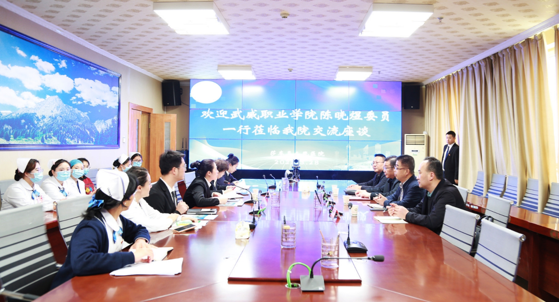 在和田地區(qū)人民醫(yī)院訪企拓崗座談會(huì)上,陳曉煜介紹了學(xué)校發(fā)展情況和本次走訪醫(yī)院的工作任務(wù),希望進(jìn)一步加強(qiáng)校院深度合作,共同優(yōu)化人才培養(yǎng)方案和課程設(shè)置,提升學(xué)校人才培養(yǎng)質(zhì)量,為邊疆衛(wèi)生事業(yè)發(fā)展提供人才支持。張建輝從學(xué)校二級(jí)學(xué)院設(shè)置、師資隊(duì)伍、教育教學(xué)、開(kāi)設(shè)專(zhuān)業(yè)、人才培養(yǎng)、畢業(yè)生實(shí)習(xí)就業(yè)等方面做了介紹。和田地區(qū)人民醫(yī)院院長(zhǎng)艾尼玩·阿布都熱依木介紹了醫(yī)院的基本情況及用人需求,對(duì)我校畢業(yè)生給予了高度評(píng)價(jià)。醫(yī)院現(xiàn)有我校醫(yī)藥衛(wèi)生類(lèi)專(zhuān)業(yè)畢業(yè)生86人,其中13名護(hù)理專(zhuān)業(yè)畢業(yè)生擔(dān)任相關(guān)科室護(hù)士長(zhǎng),成為醫(yī)院護(hù)理崗位中堅(jiān)力量,他希望學(xué)校培養(yǎng)更多優(yōu)秀畢業(yè)生到醫(yī)院實(shí)習(xí)就業(yè)。