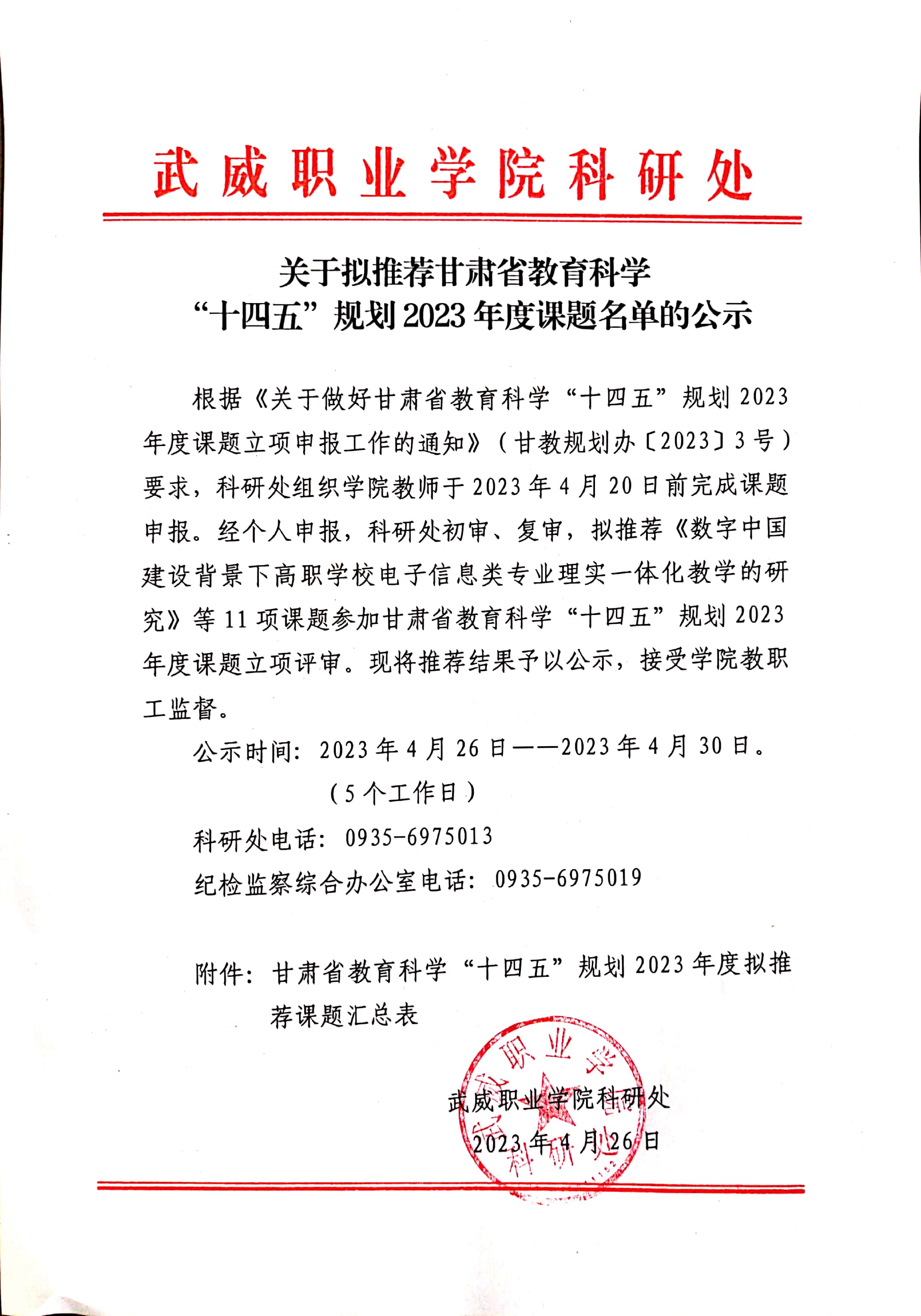 關(guān)于擬推薦甘肅省教育科學(xué) “十四五”規(guī)劃2023年度課題名單的公示