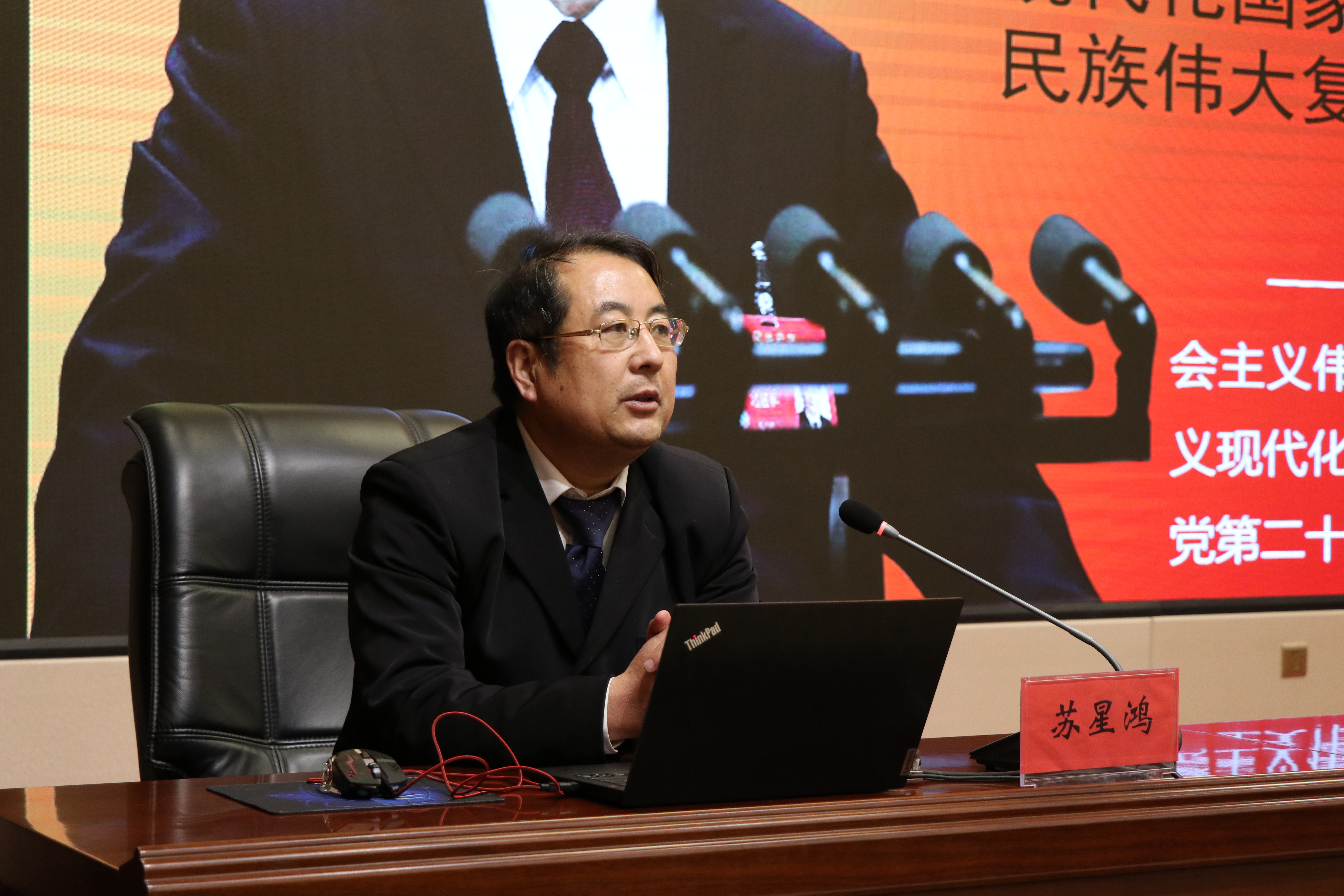 蘇星鴻教授以《深刻把握黨的二十大精神的核心要義》為題,從黨的二十大召開的歷史背景和重大意義、過去五年的工作和新時(shí)代十年的偉大變革、開辟馬克思主義中國化時(shí)代化新境界的科學(xué)內(nèi)涵、新時(shí)代新征程中國共產(chǎn)黨使命任務(wù)的豐富內(nèi)涵、以黨的自我革命推進(jìn)偉大的社會(huì)革命的實(shí)踐意義和“五個(gè)必由之路”的戰(zhàn)略意義六個(gè)方面進(jìn)行了深入淺出的闡述,對(duì)師生深刻理解黨的二十大精神具有很強(qiáng)的啟發(fā)意義。