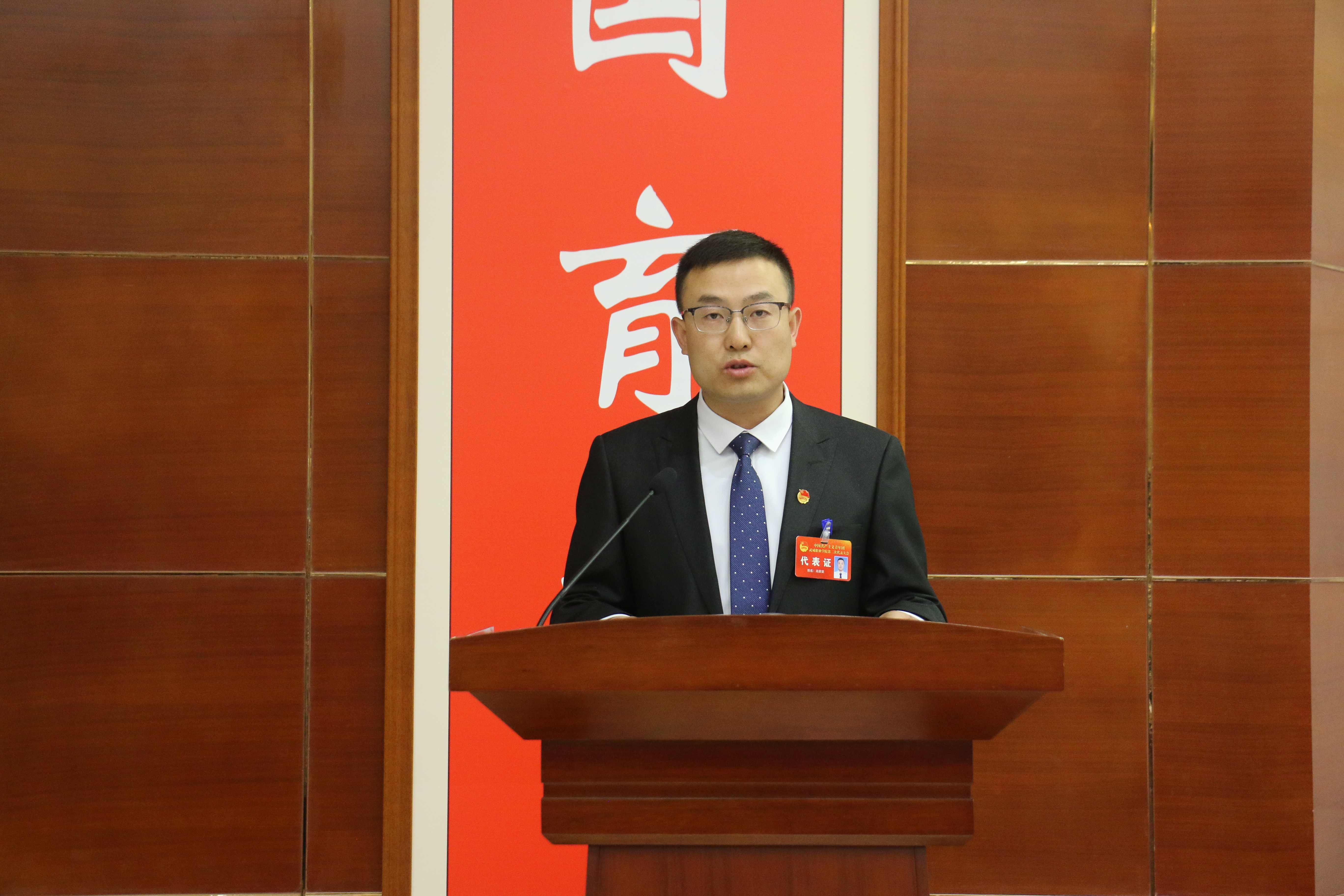 校團(tuán)委負(fù)責(zé)人高鵬堂代表共青團(tuán)武威職業(yè)學(xué)院第一屆委員會作了題為《高舉團(tuán)旗跟黨走 砥礪奮進(jìn)建新功 奮力書寫加快推進(jìn)學(xué)校高質(zhì)量發(fā)展的青春答卷》的工作報告。