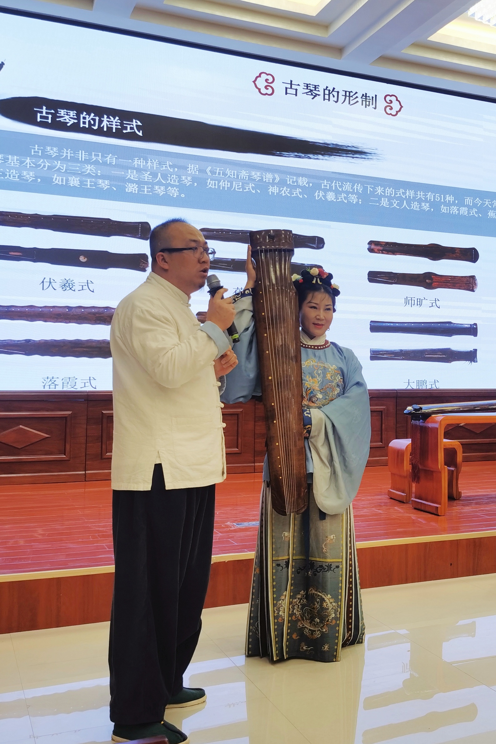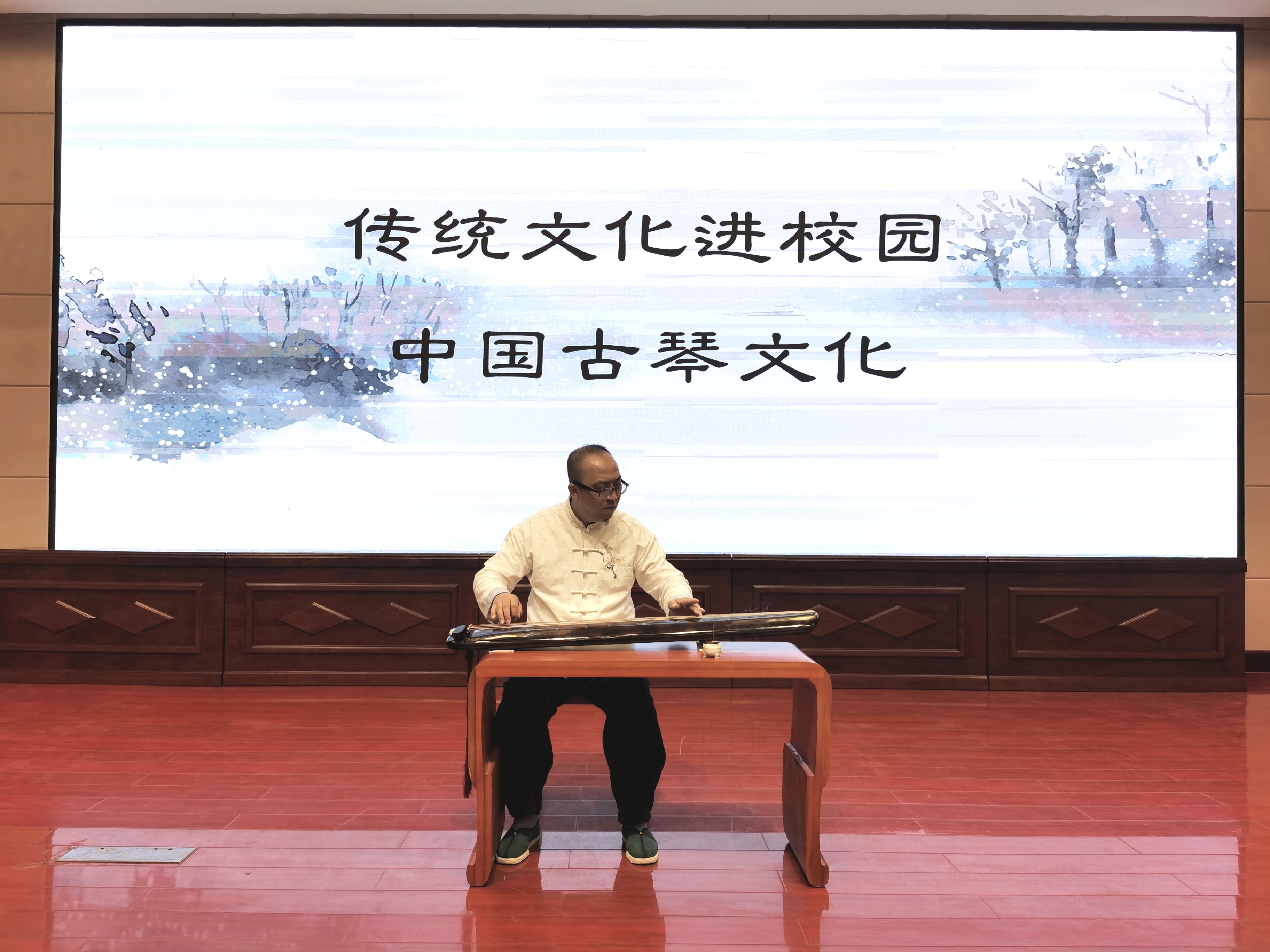 5月11日,學(xué)校傳統(tǒng)文化體驗(yàn)中心、非遺體驗(yàn)中心邀請到了移云齋涼州分館館長、古琴講師霍宏昌在菁英廳做了《古琴文化》專題講座和古琴名曲演奏?;艉瓴龔囊磺堕L亭怨慢》開場,古琴的古樸之聲,安靜、深沉、意味悠長,讓聽者瞬間感受到了內(nèi)心的沉靜。在講解時(shí),他以影視劇中的琴人為切入點(diǎn),詳細(xì)地闡述了古琴的歷史和發(fā)展,讓同學(xué)們了解到古琴的構(gòu)造、樣式、音色和記譜法等,并在現(xiàn)場彈奏了古琴名曲《酒狂》和《流水》,通過感官感受加深大家對(duì)古琴的印象。活動(dòng)在直播武威微信公眾號(hào)上同步直播,在線觀看人數(shù)達(dá)到1.62萬人。