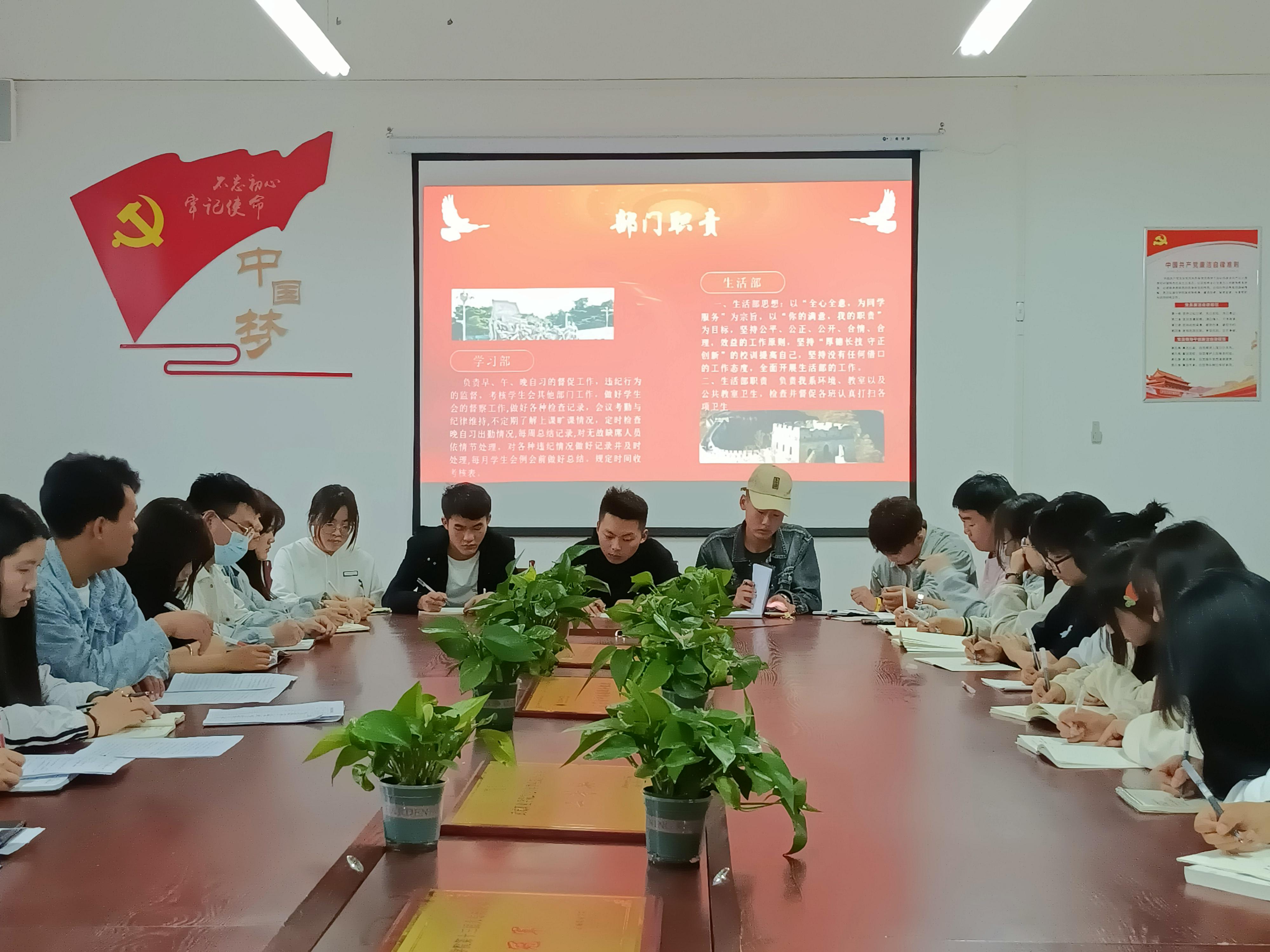 ? ? ? ? 乘勢而上謀發(fā)展,凝聚共識(shí)向未來,為了新學(xué)期的工作更上一個(gè)臺(tái)階,藥學(xué)院于2023年5月29日晚7:30,在尚德樓411組織召開團(tuán)學(xué)干部作風(fēng)建設(shè)例會(huì)。會(huì)議由校學(xué)生會(huì)主席白國強(qiáng),藥學(xué)院主席團(tuán)李停強(qiáng),尚寶萍,楊洋,各部部長及22級(jí)新學(xué)生會(huì)部分成員共同參加。此次例會(huì)的主要目的是:加強(qiáng)學(xué)院和各分院的緊密溝通,更好地為院系服務(wù),也希望各分院給予院學(xué)生會(huì)的工作以意見與建議。