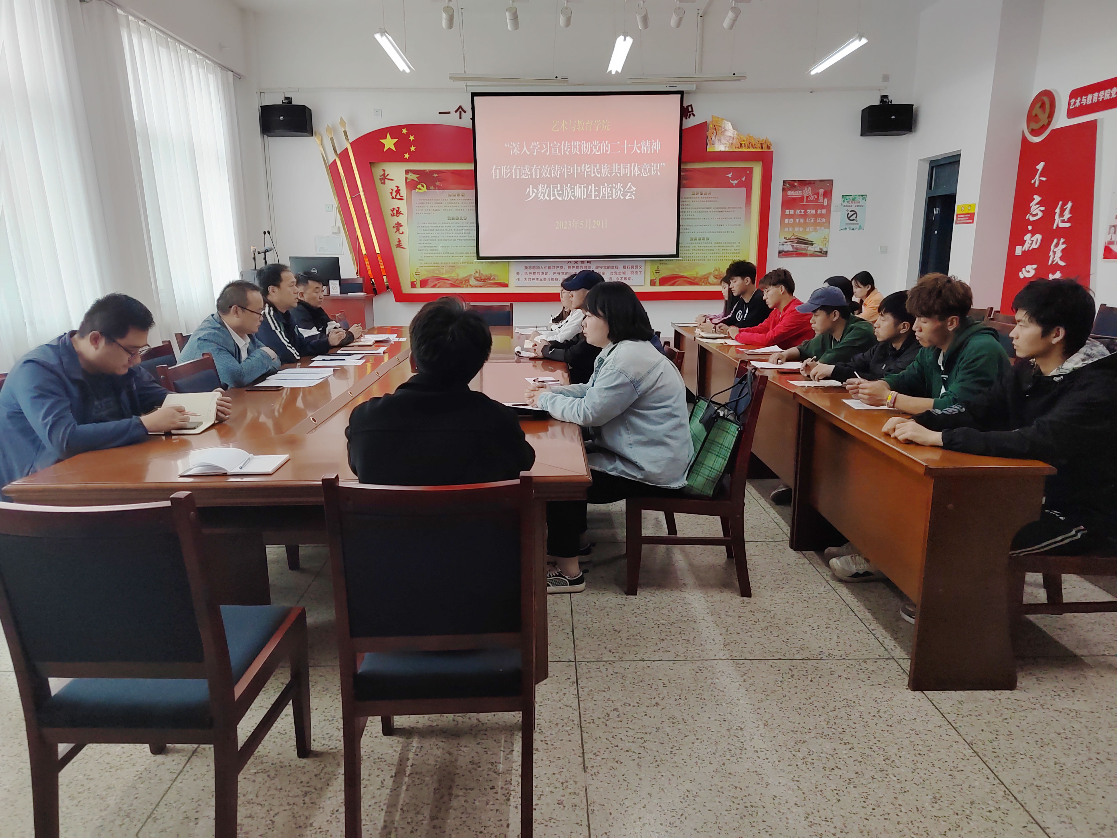2023年5月29日下午,藝術(shù)與教育學(xué)院召開2023年第20個民族團結(jié)進步宣傳月各民族師生座談會,2022級各專業(yè)各民族學(xué)生代表,各民族師生代表和輔導(dǎo)員、班主任參加會議,會議由藝術(shù)與教育學(xué)院黨總支書記王政主持。
