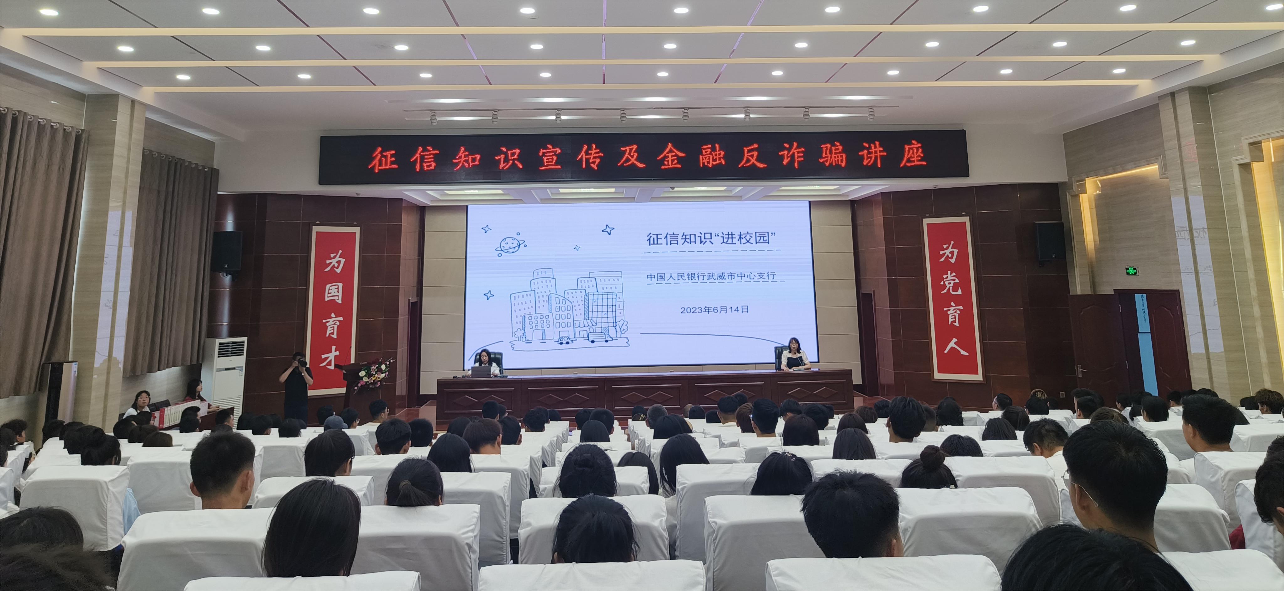 為普及金融、征信知識(shí),提高學(xué)生的誠(chéng)信意識(shí)和風(fēng)險(xiǎn)意識(shí),6月14日下午,在第16個(gè)全國(guó)“信用記錄關(guān)愛日”來(lái)臨之際,由我校和中國(guó)人民銀行武威市中心支行及10家商業(yè)銀行聯(lián)合主辦的“普及征信知識(shí),提高誠(chéng)信意識(shí)”為主題的征信知識(shí)進(jìn)校園宣傳活動(dòng)在學(xué)校大學(xué)生活動(dòng)中心前廣場(chǎng)和菁英廳舉行,學(xué)校500余名師生代表參加了本次活動(dòng)。