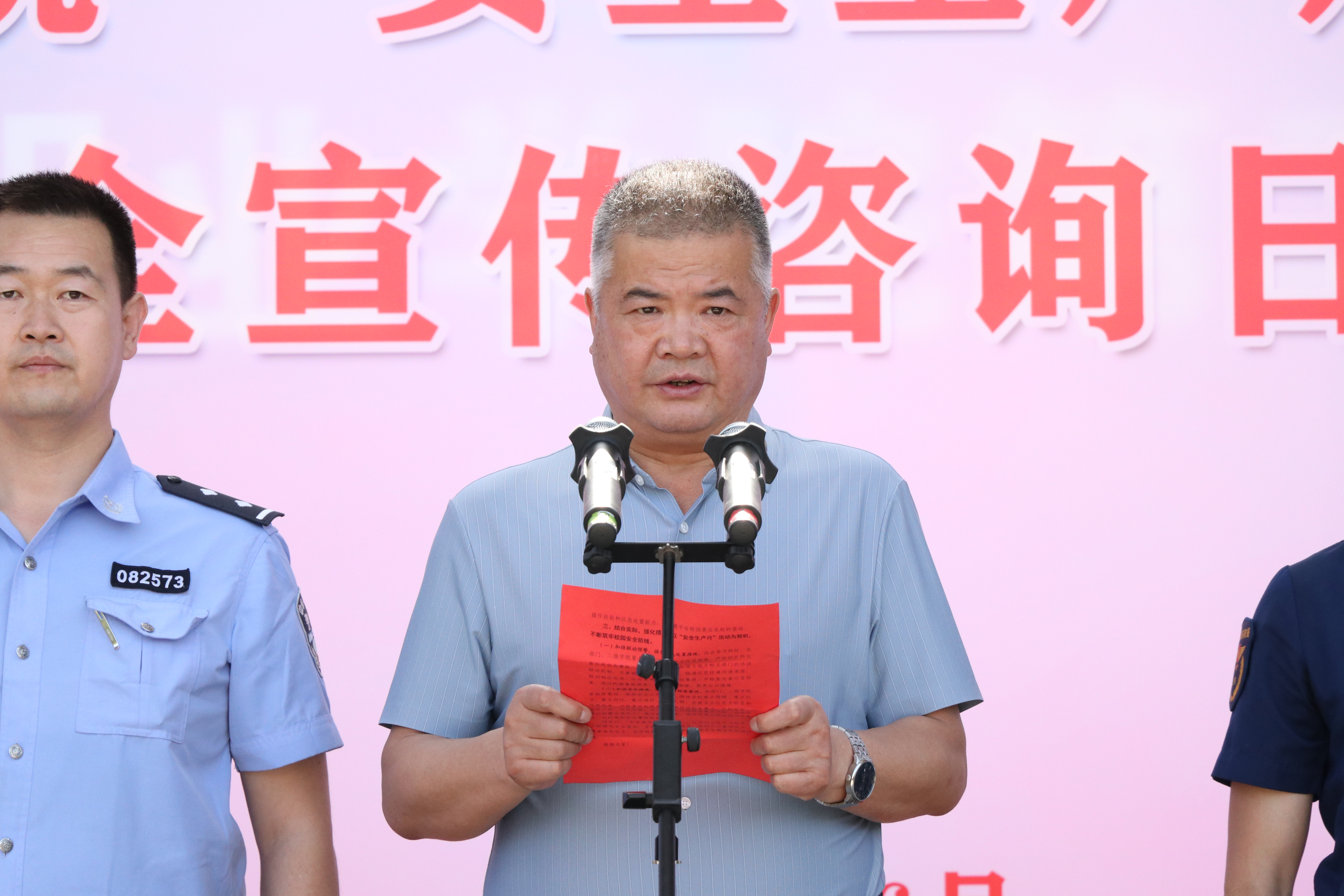 6月16日下午,學校組織開展“安全生產(chǎn)月”活動啟動儀式暨“6·16”安全宣傳咨詢日活動,拉開了以“人人講安全、個個會應急”為主題的全國第22個“安全生產(chǎn)月”活動序幕。學校黨委委員、副校長王守云、西關派出所副所長藺福鵬、各相關部門及二級學院負責人出席活動。