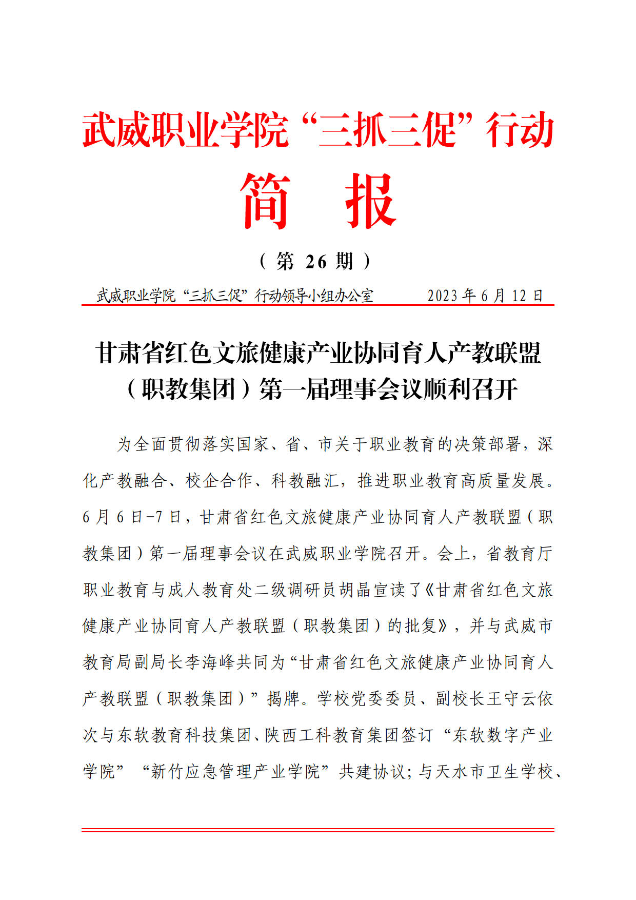 簡報(bào)第26期:甘肅省紅色文旅健康產(chǎn)業(yè)協(xié)同育人產(chǎn)教聯(lián)盟(職教集團(tuán))第一屆理事會議順利召開